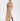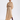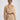 Beige long dress with asymmetric draping and a chic clasp detail for modern elegance.