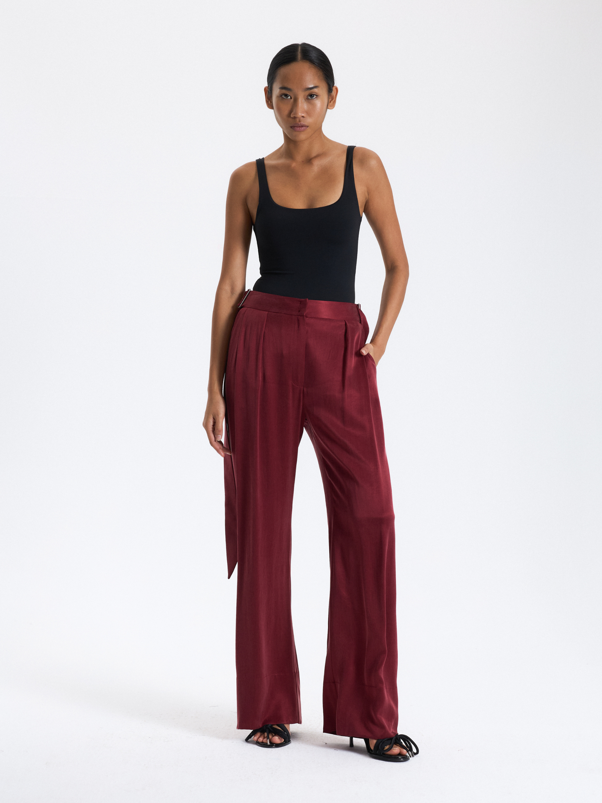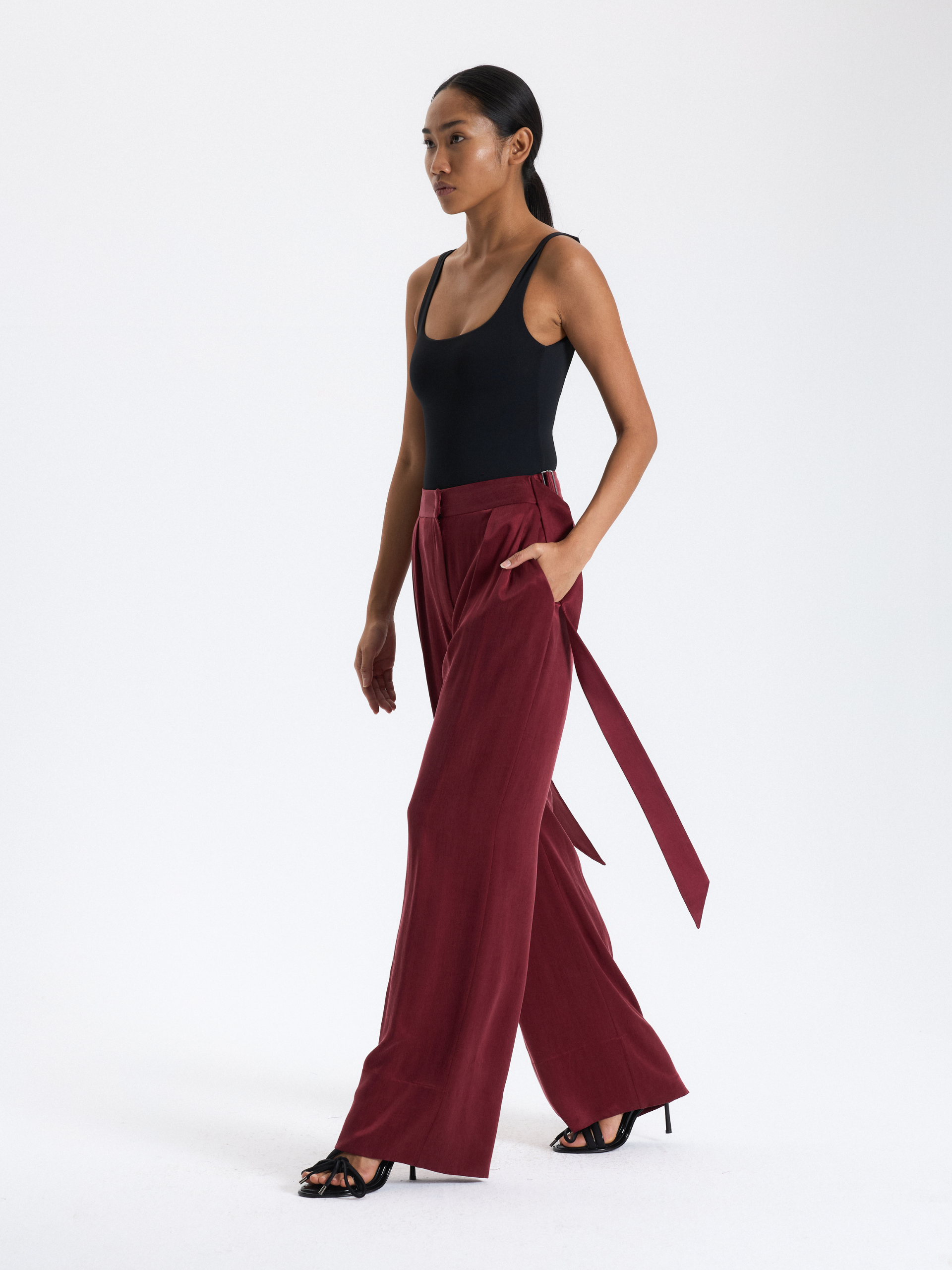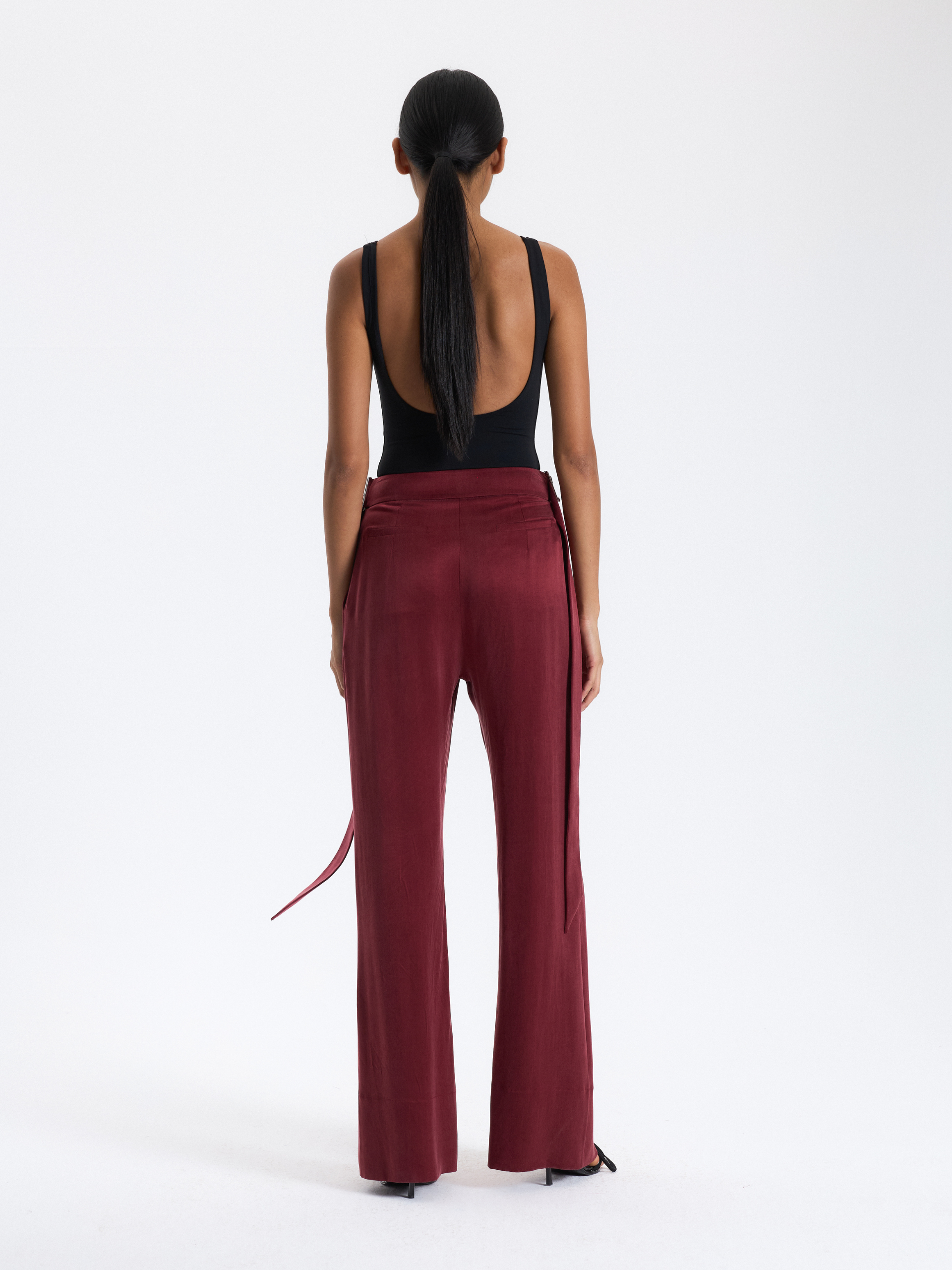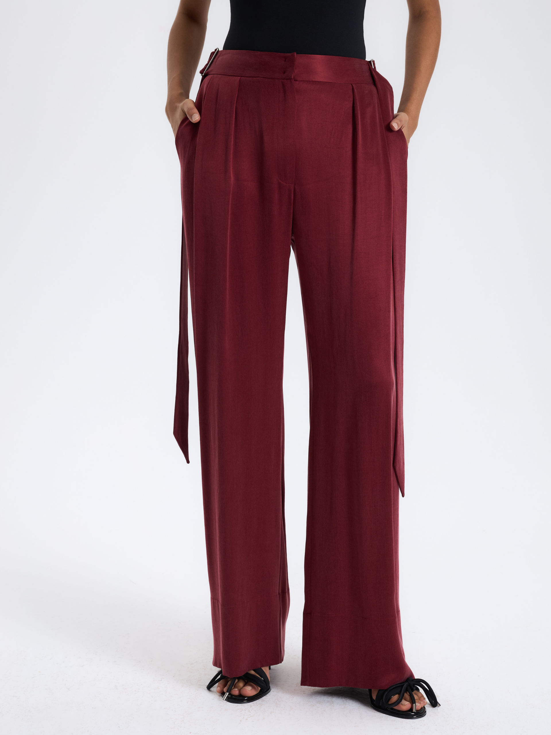 Burgundy Belted Palazzo Trousers