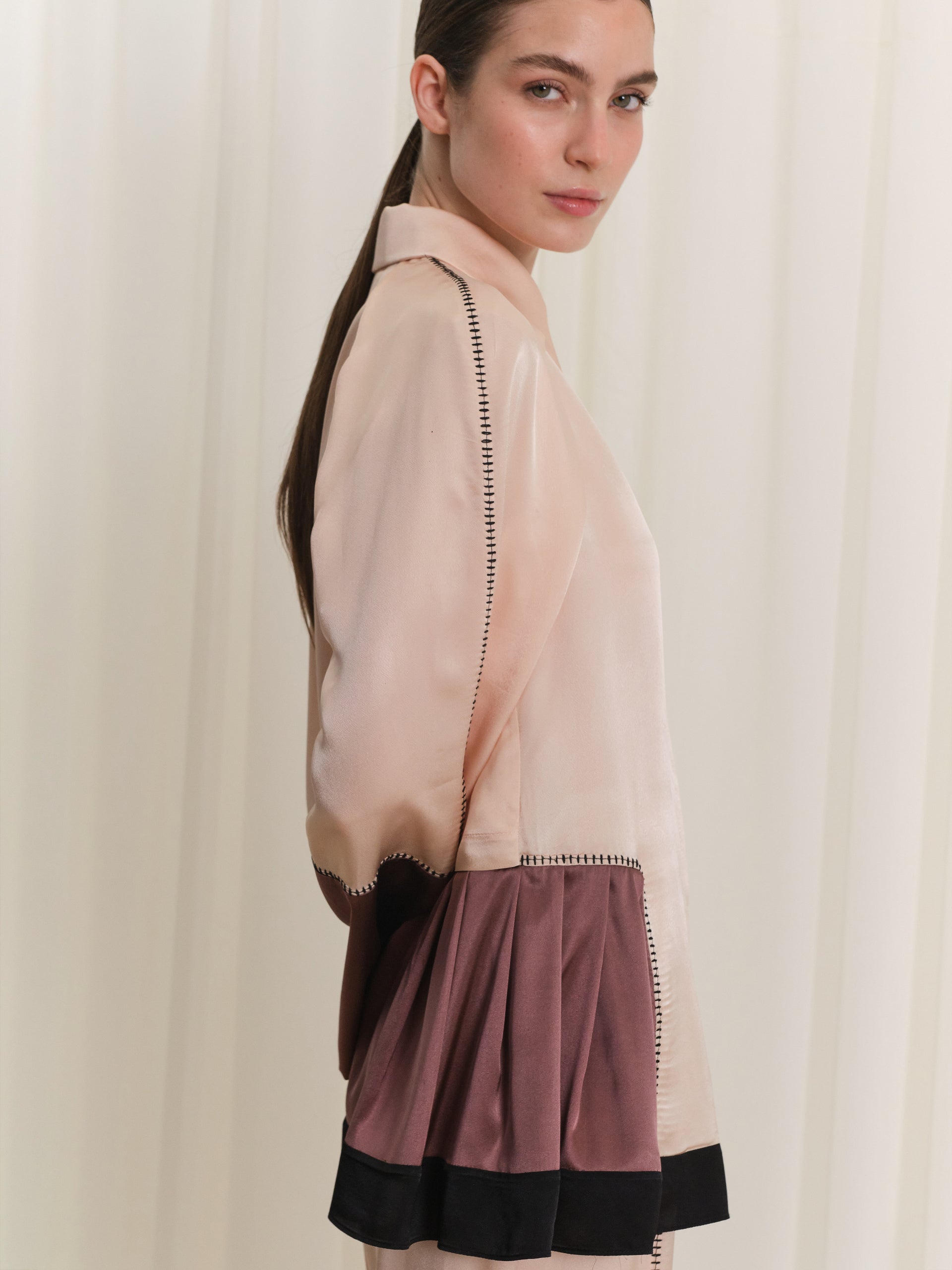 Süs dikiş detaylarıyla hareket kazanan bu kadın bluz, sade formunu modern ve zarif bir çizgiyle tamamlar. Akışkan yapısı sayesinde vücutta rahat bir duruş sağlarken gün boyu konforlu bir kullanım hissi sunar. Zamansız tasarımı, günlük şıklıktan daha özenli görünümlere kadar farklı stillere uyum sağlayan dengeli bir seçenek oluşturur.