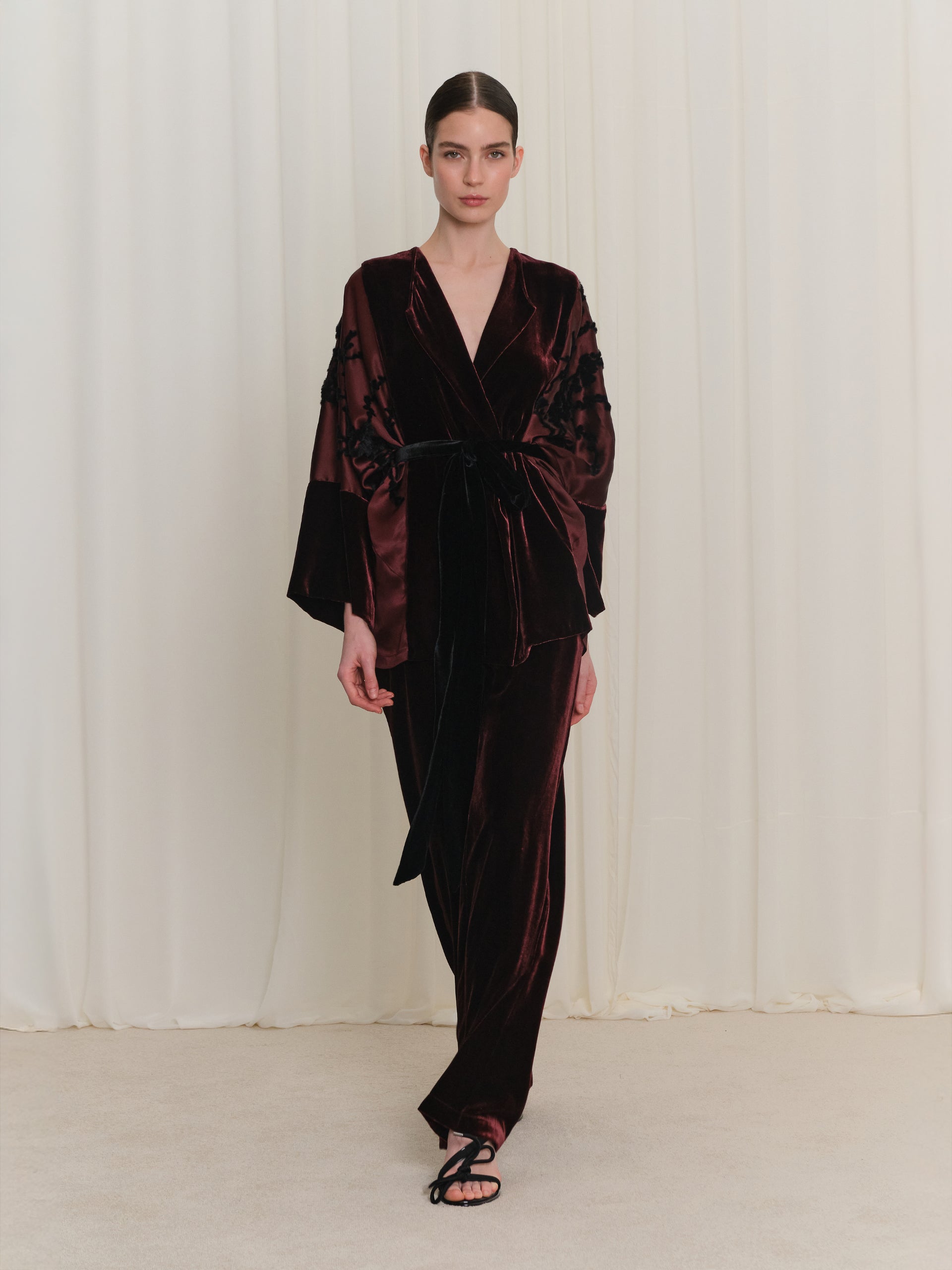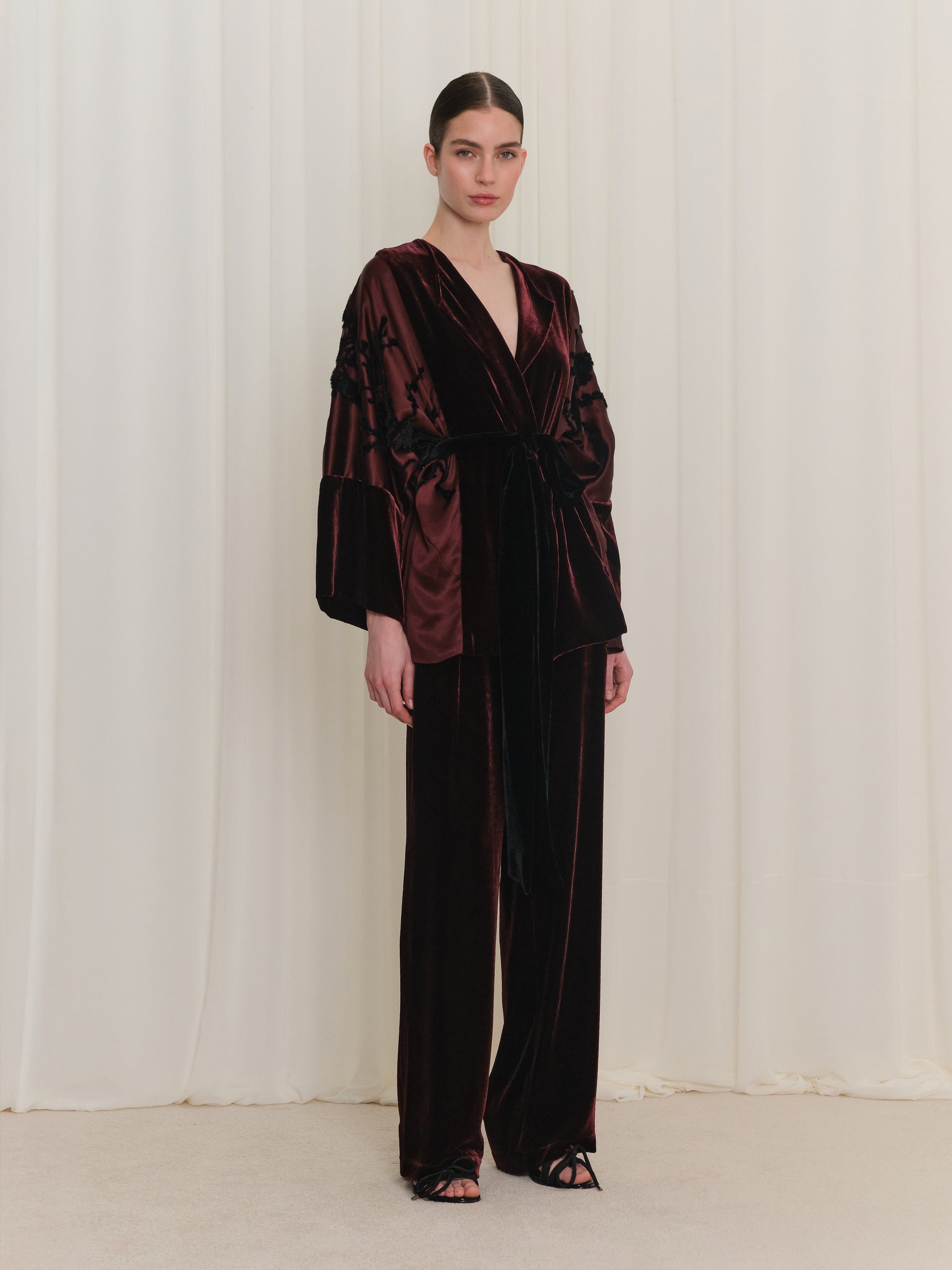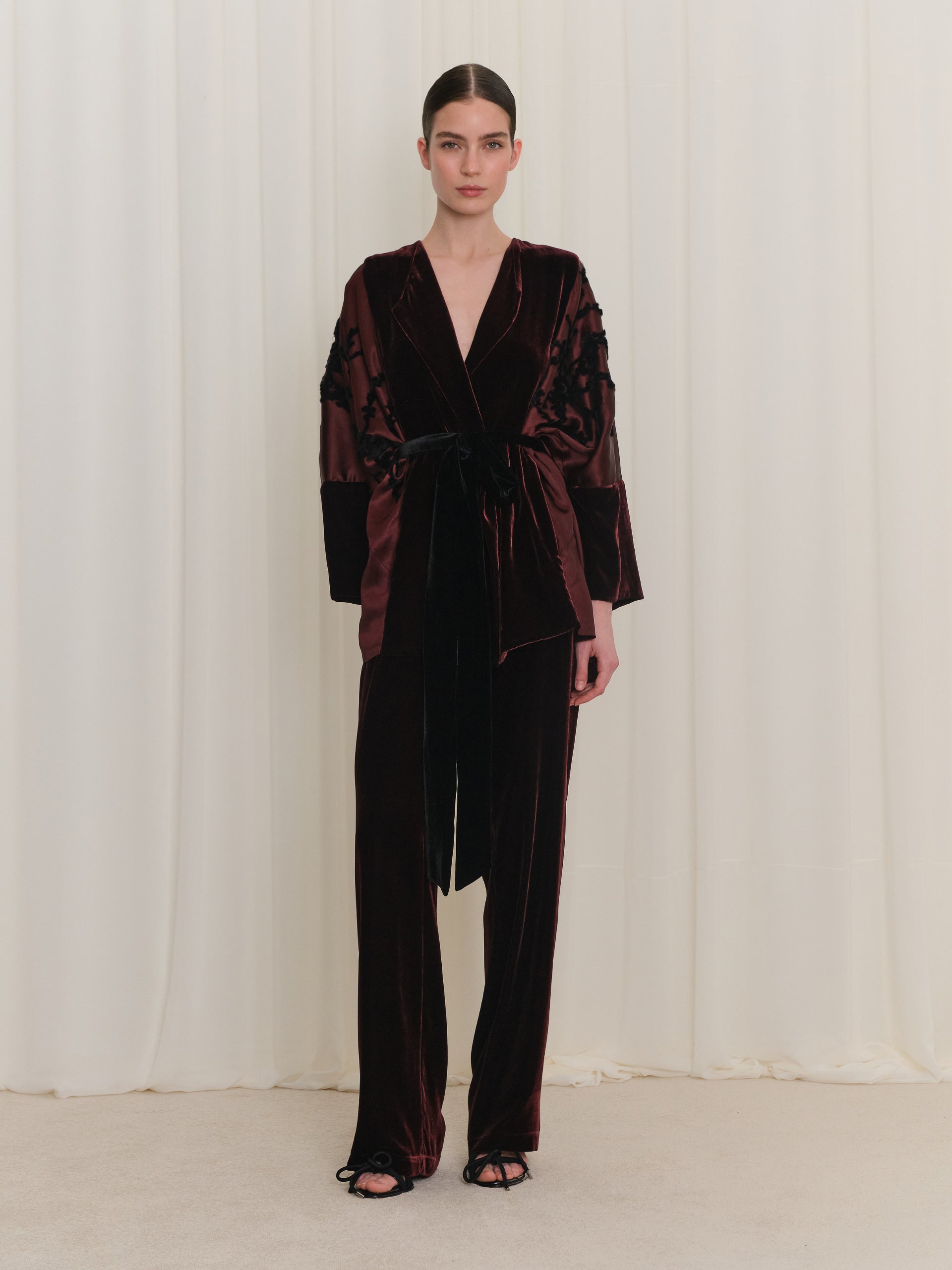 Flok Desen Detaylı Kadife Ceket