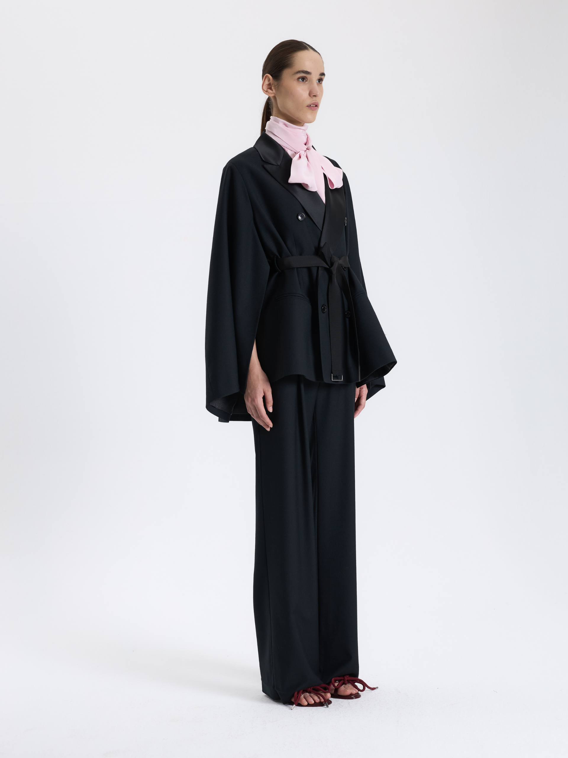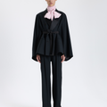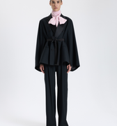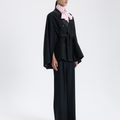 Klasik siyah ceketi modernize eden bu tasarım, saten yaka detayları ve kuşaklı formu ile güçlü bir şıklık sunar. Hem gece hem gündüz kullanımı için ideal bir seçimdir.