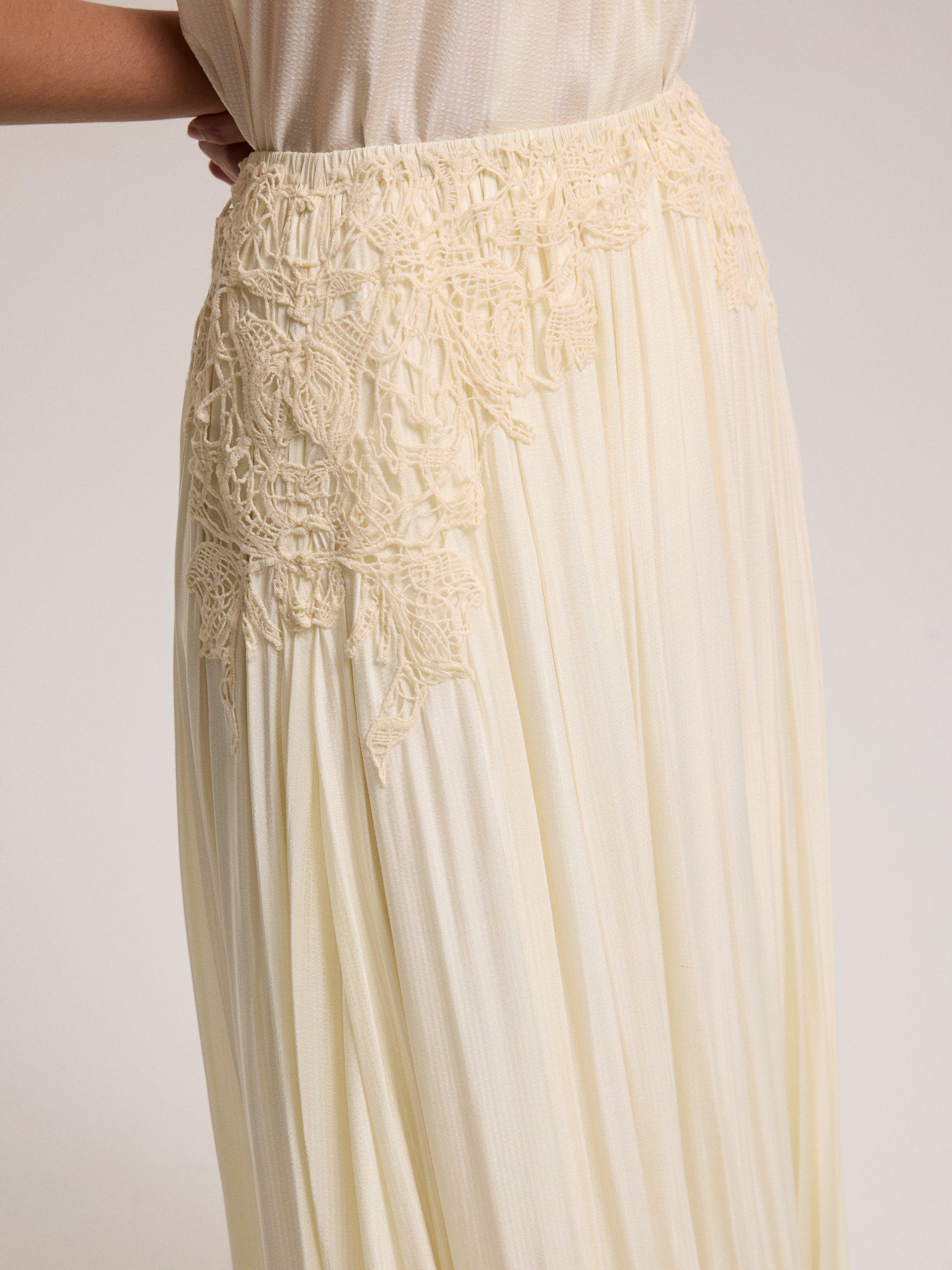 Dantel İşlemeli Sarı Etek