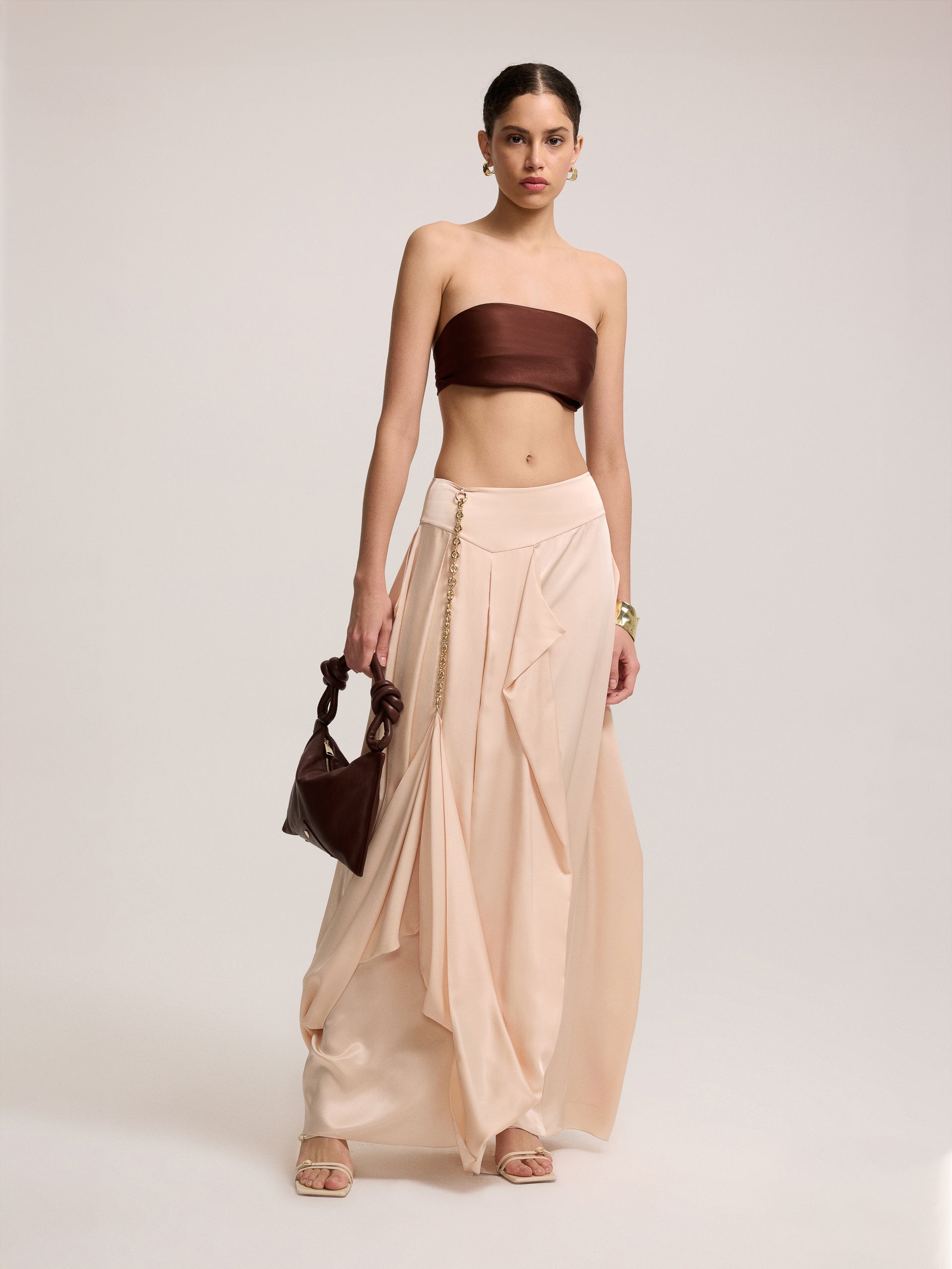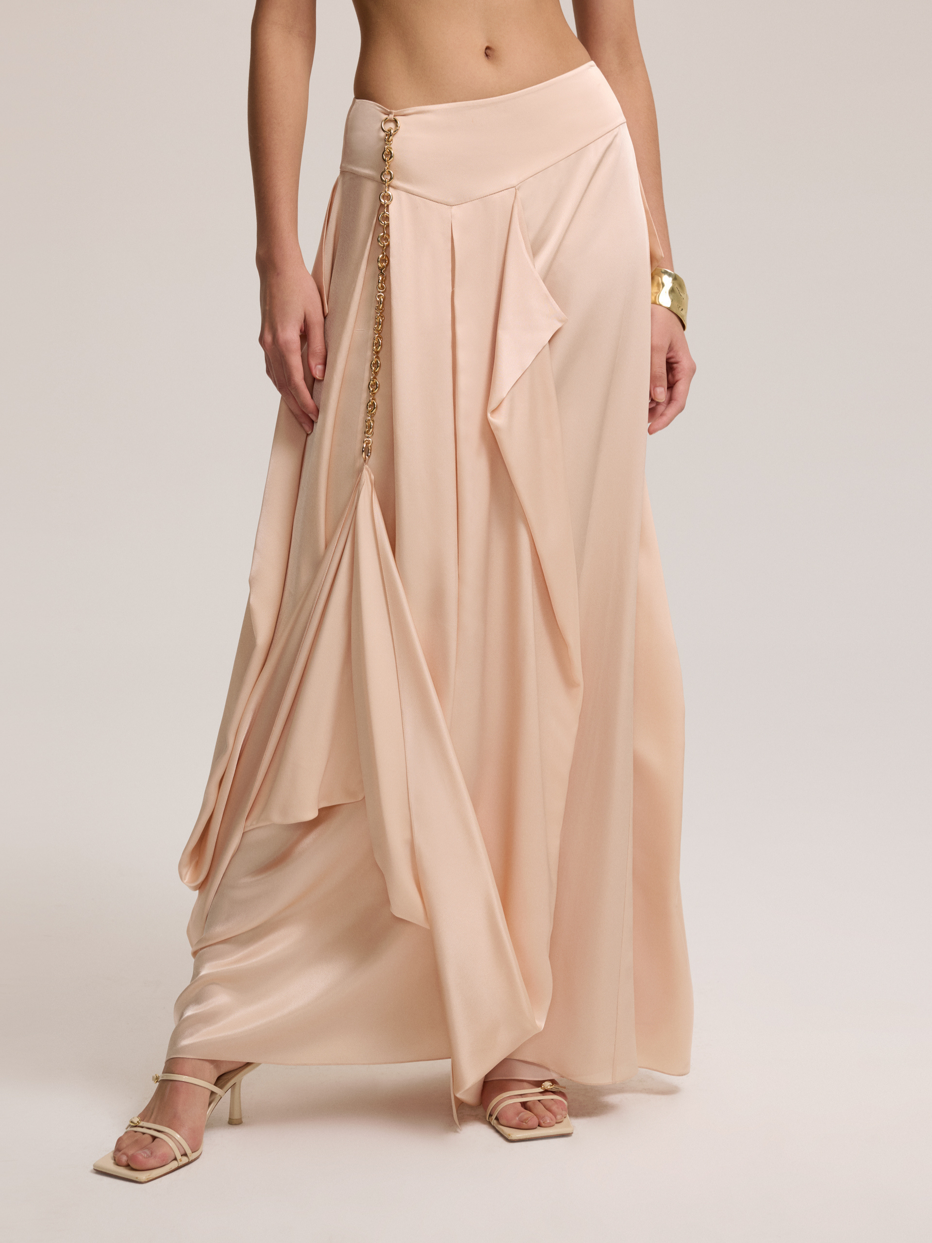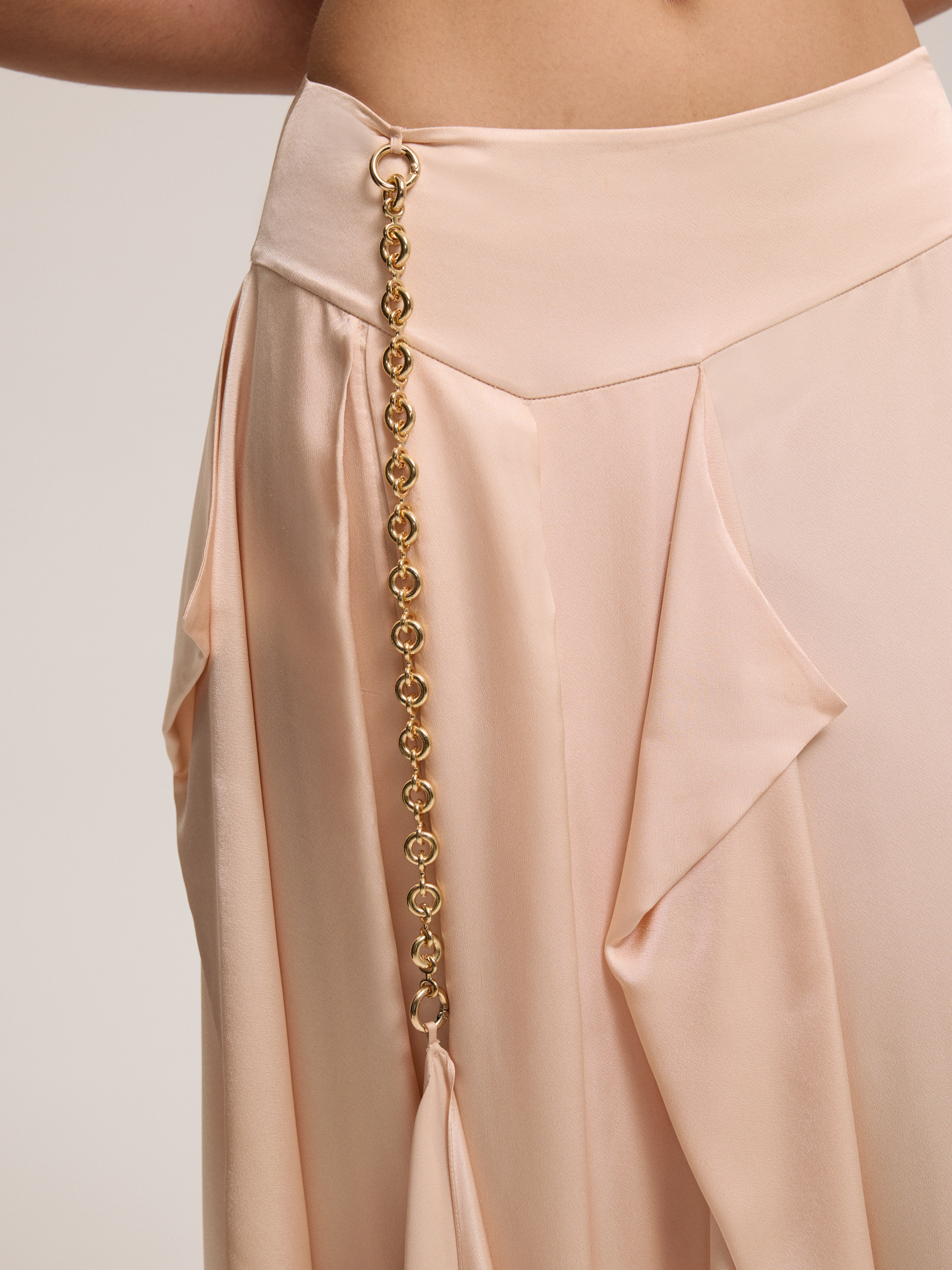 Zarif zincir detaylarıyla şıklığınızı tamamlayan pudra etek, modern ve şık bir görünüm için mükemmel seçim! Hem günlük hem de özel anlar için ideal.