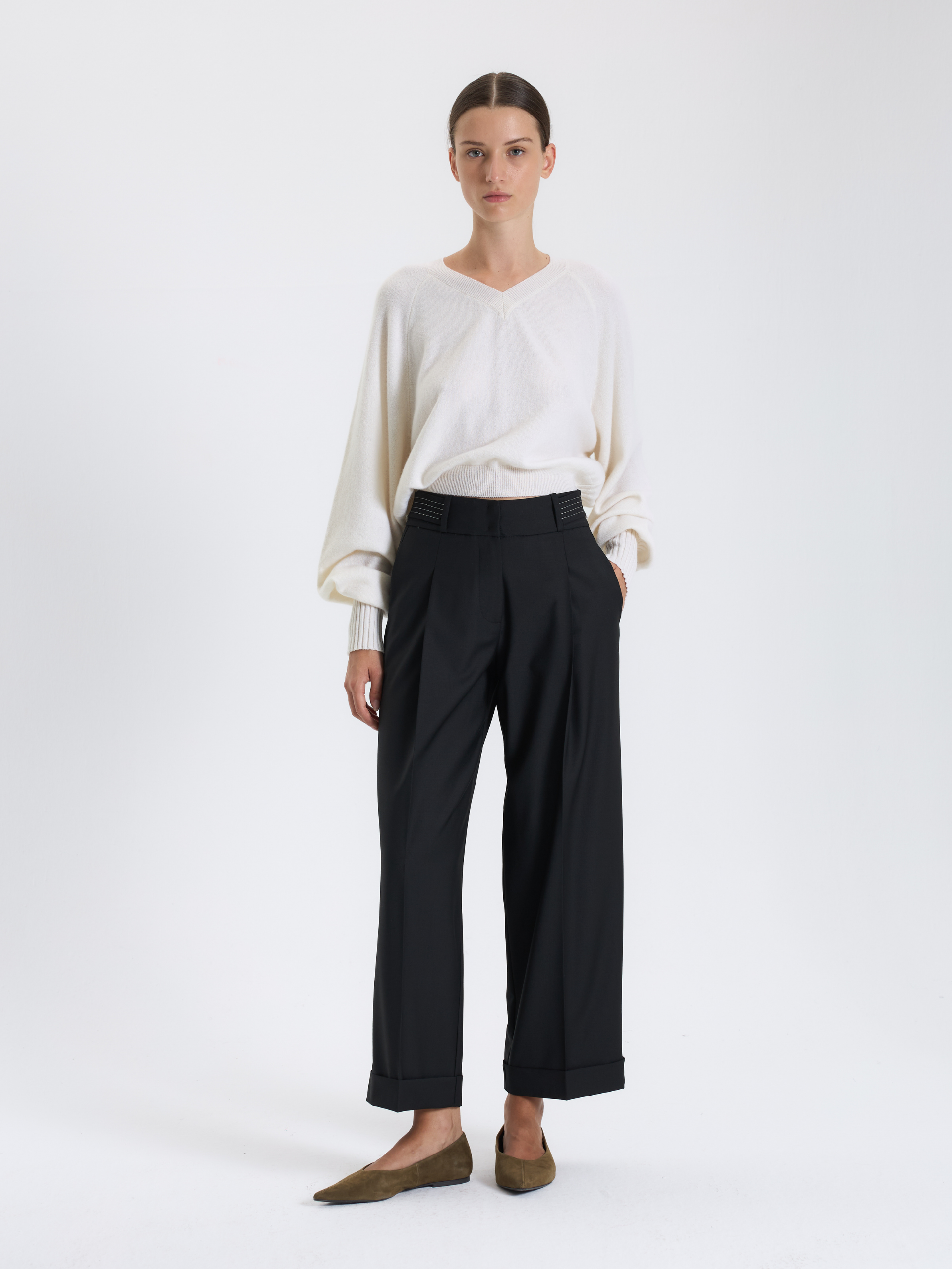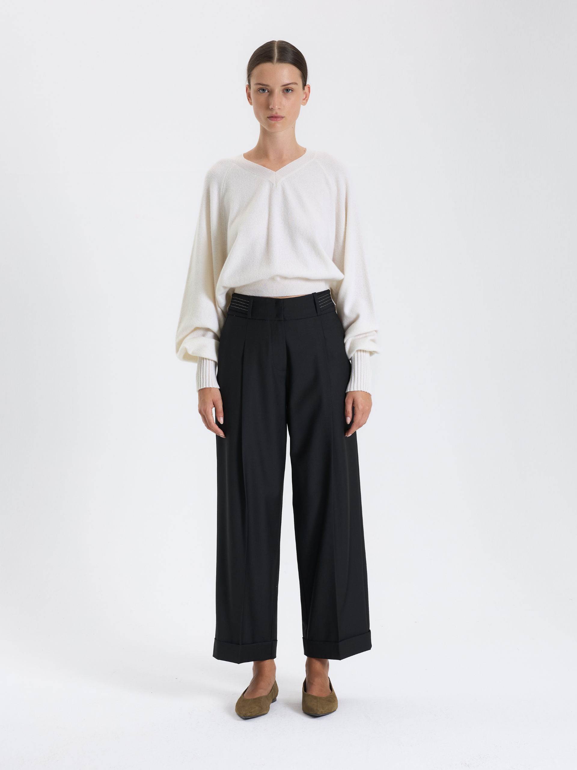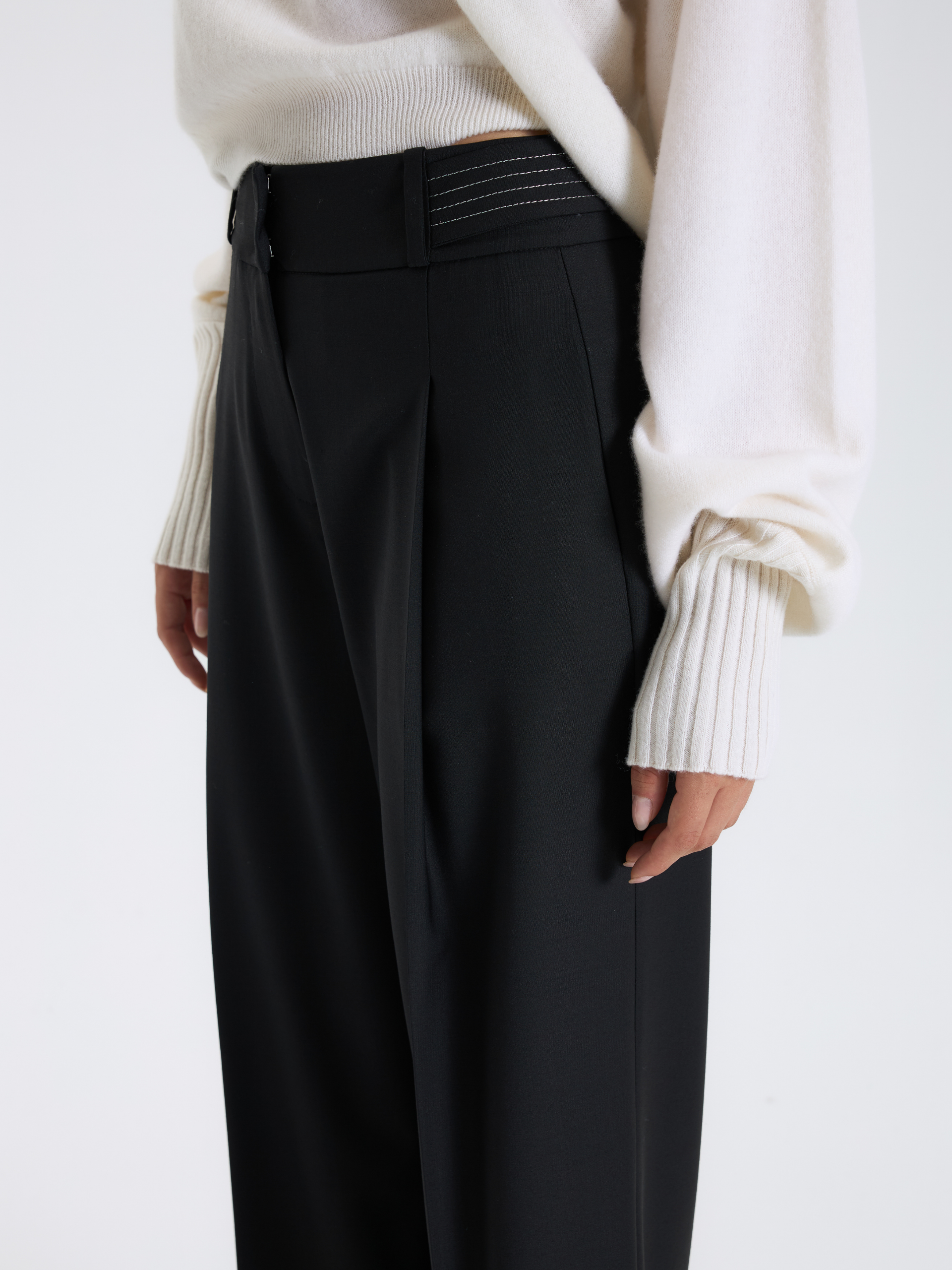 Kontrast Dikişli Siyah Pantolon