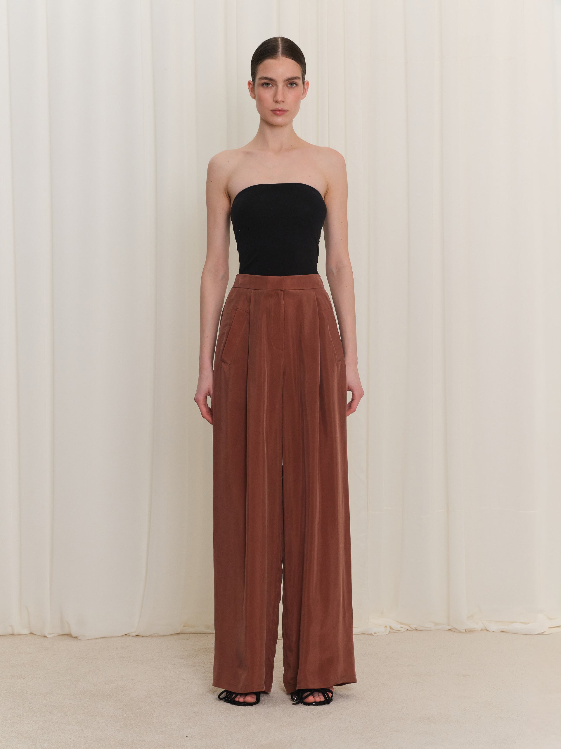 Pili detaylarıyla hacim kazanan bu kadın pantolon, sade formunu işlevsel cep detaylarıyla dengeler. Düz paça yapısı sayesinde farklı üstlerle kolayca eşleşen bir siluet sunar. Günlük kullanımdan şehir stiline uzanan kombinlerde zamansız bir seçenek olarak öne çıkar.