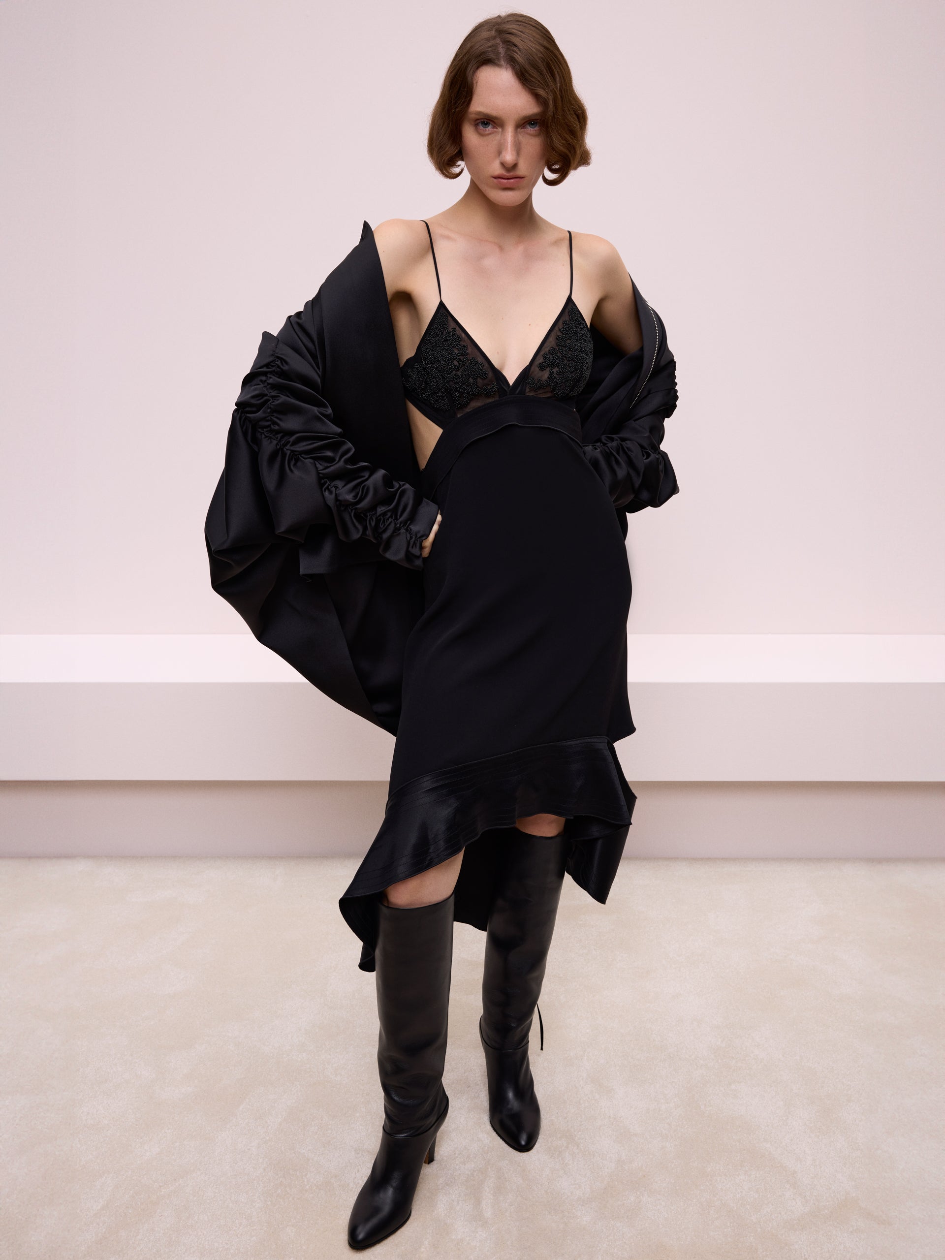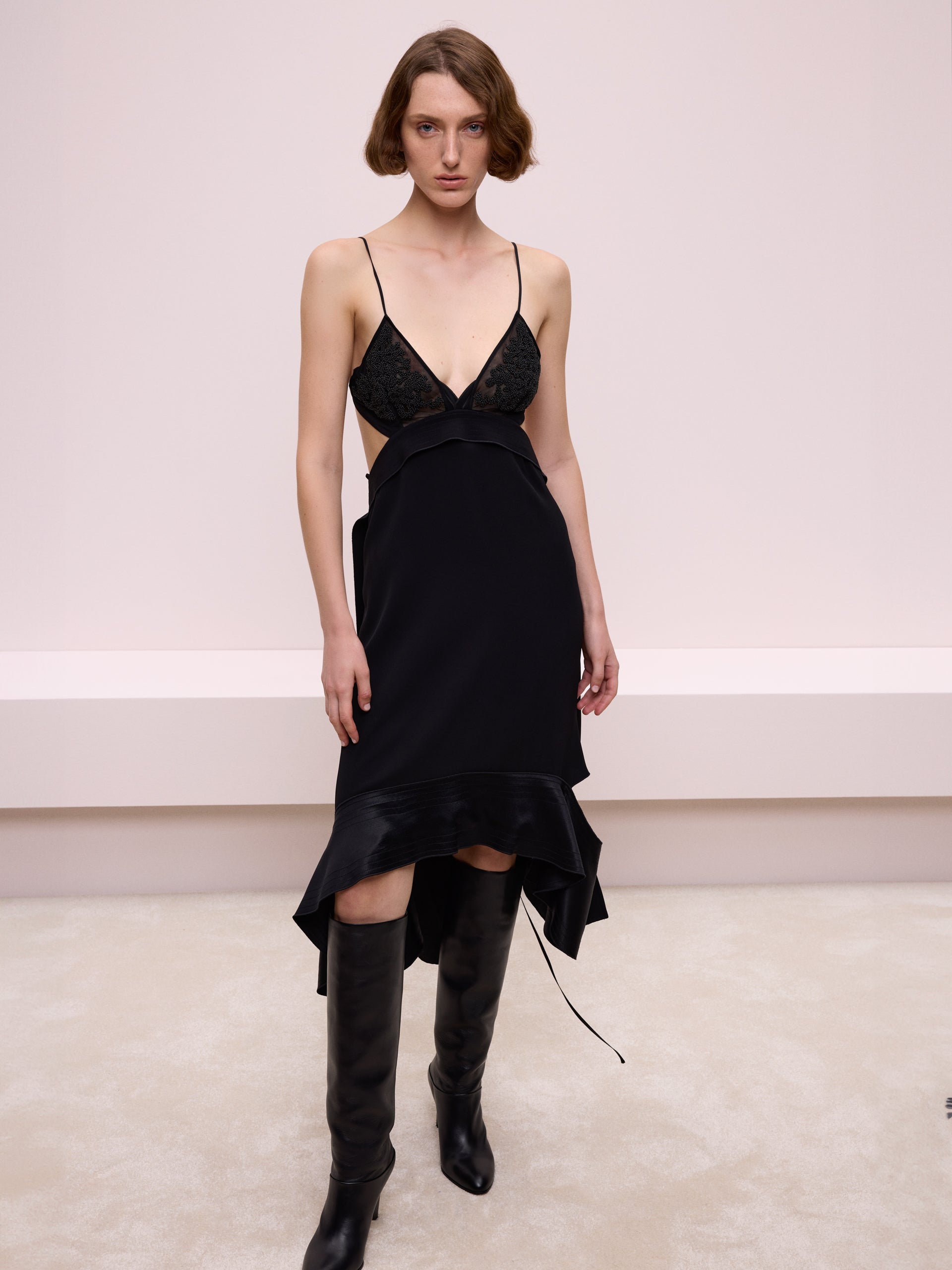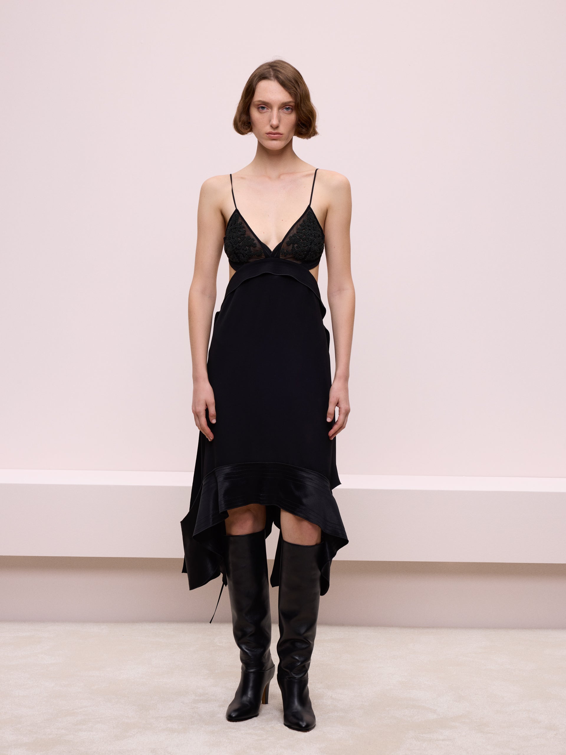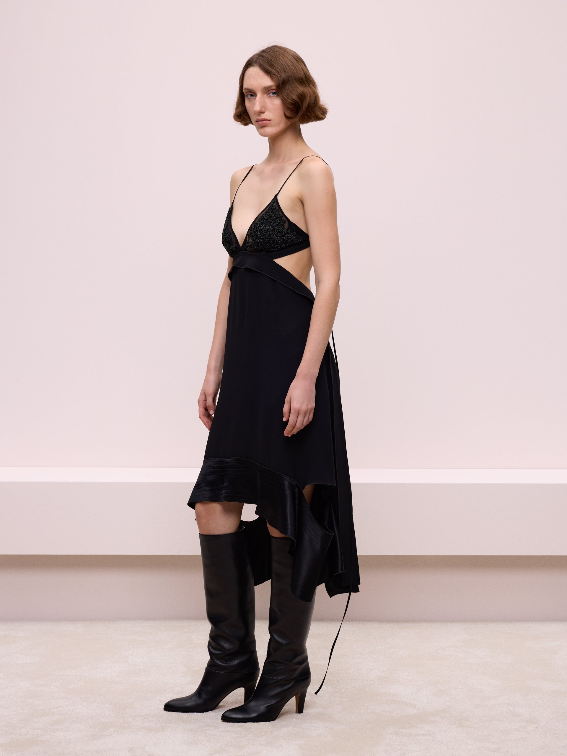 İp askılı siyah elbise, sade ve şık tasarımıyla zarafeti yansıtıyor. Hem günlük hem de özel davetlerde rahatça tercih edebileceğiniz bir parça.