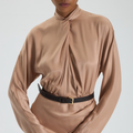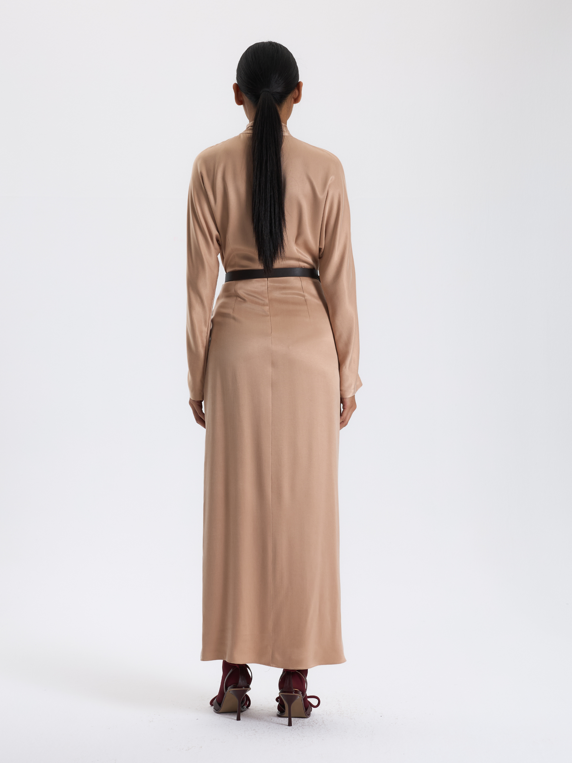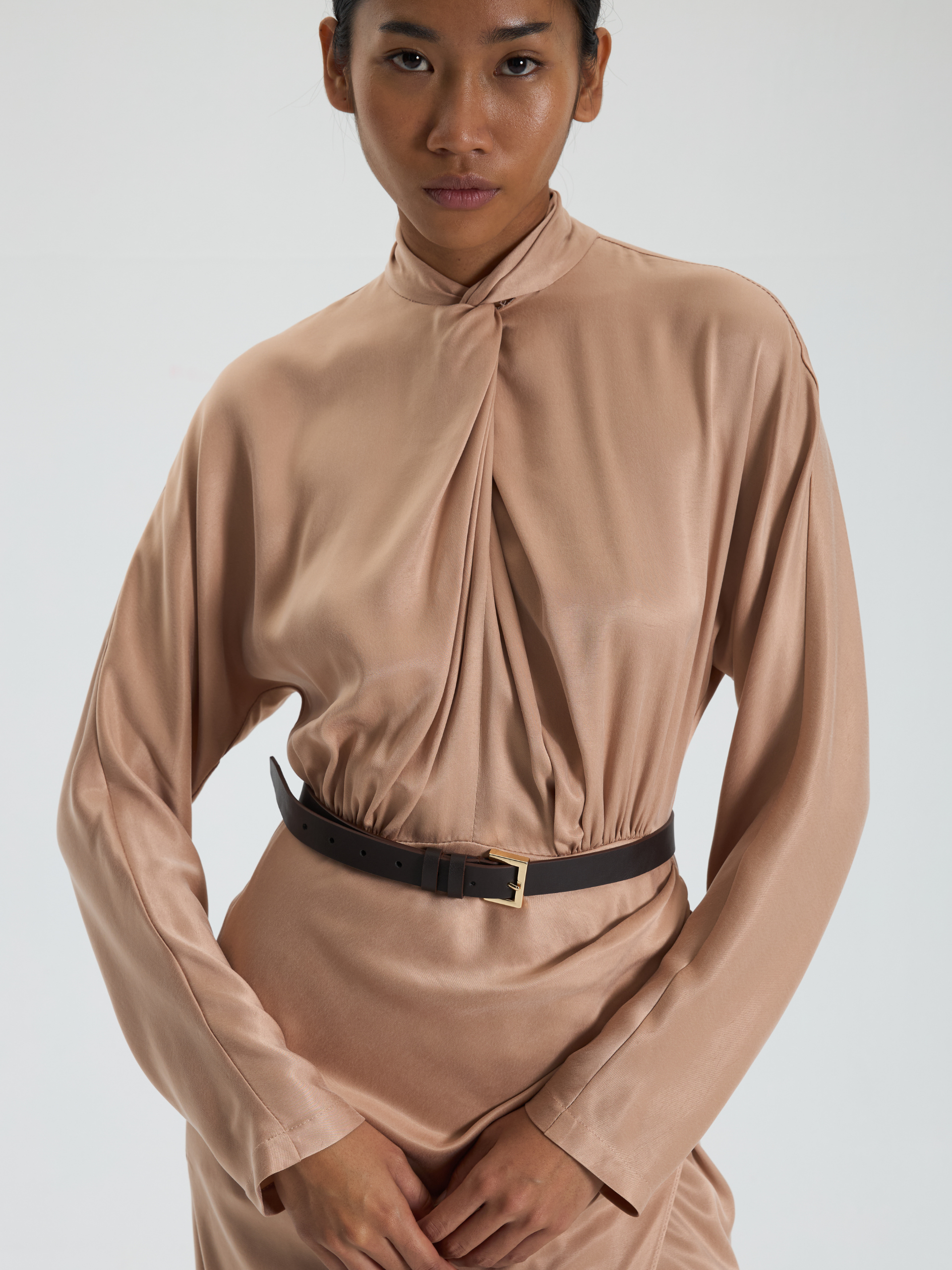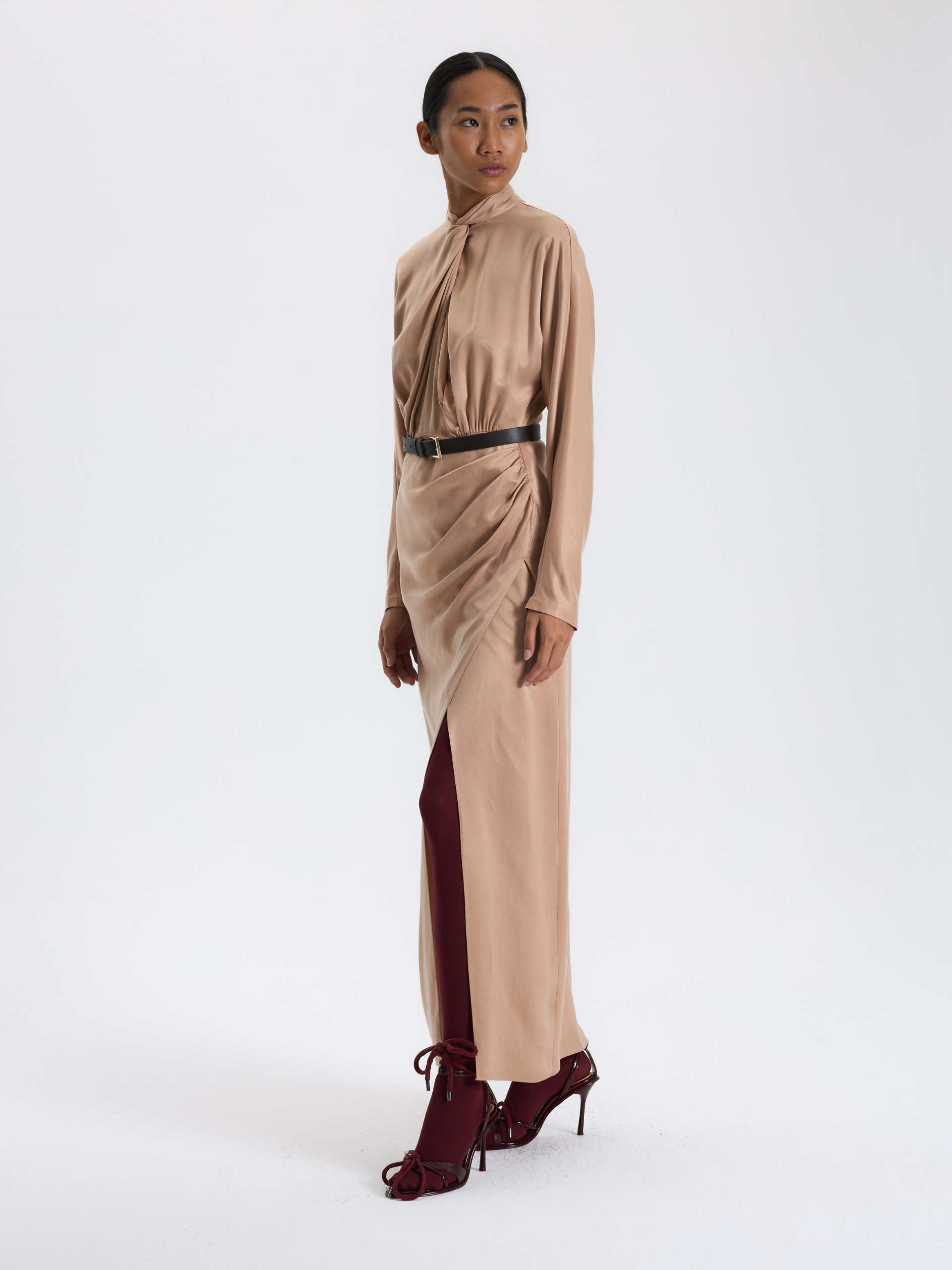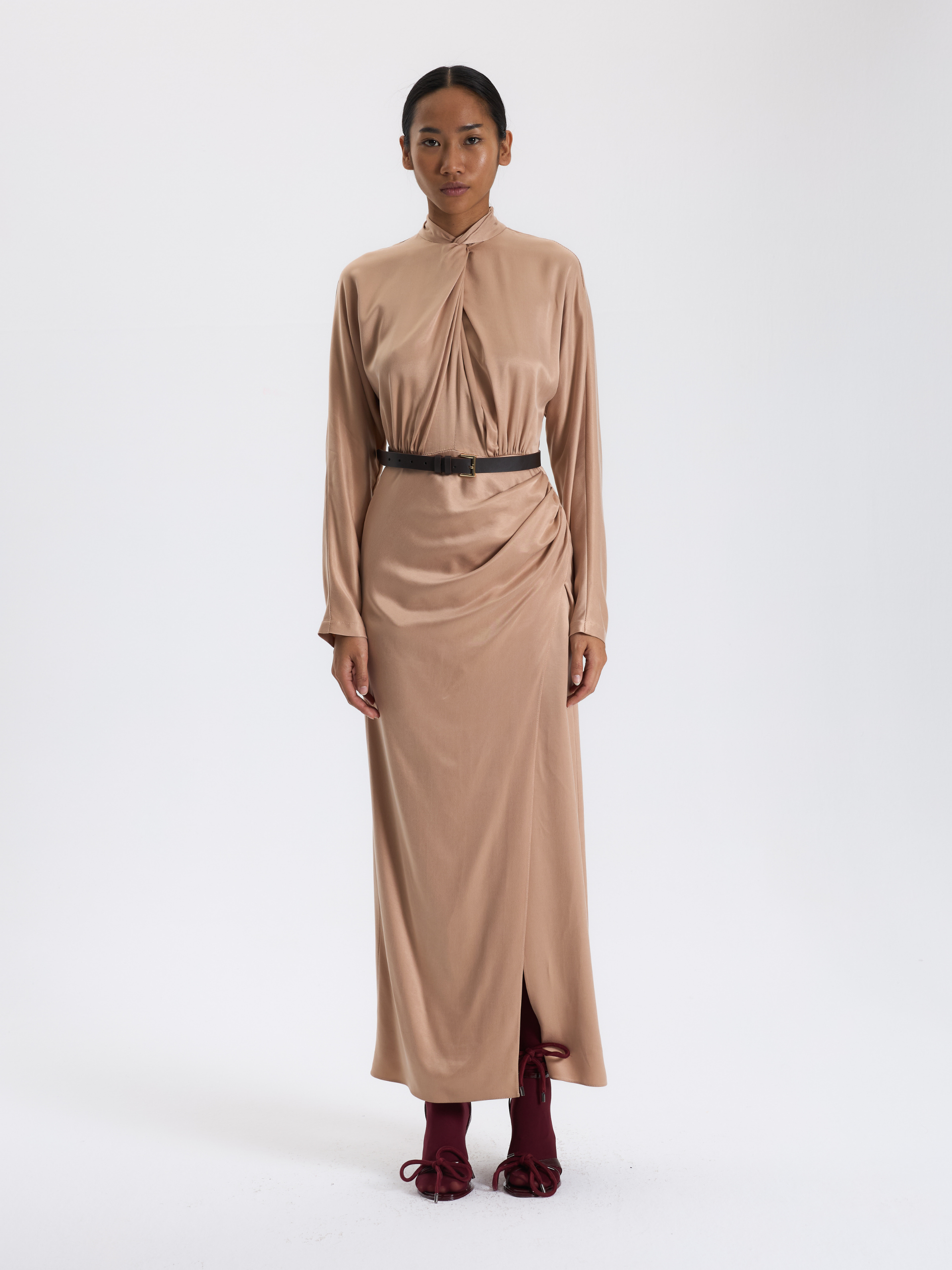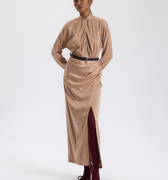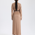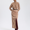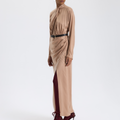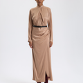 Bej Drapeli Uzun Elbise