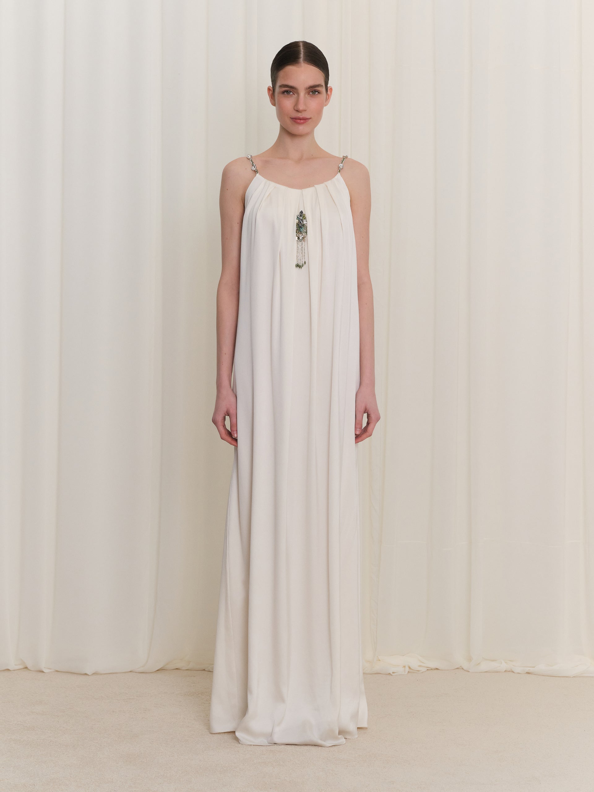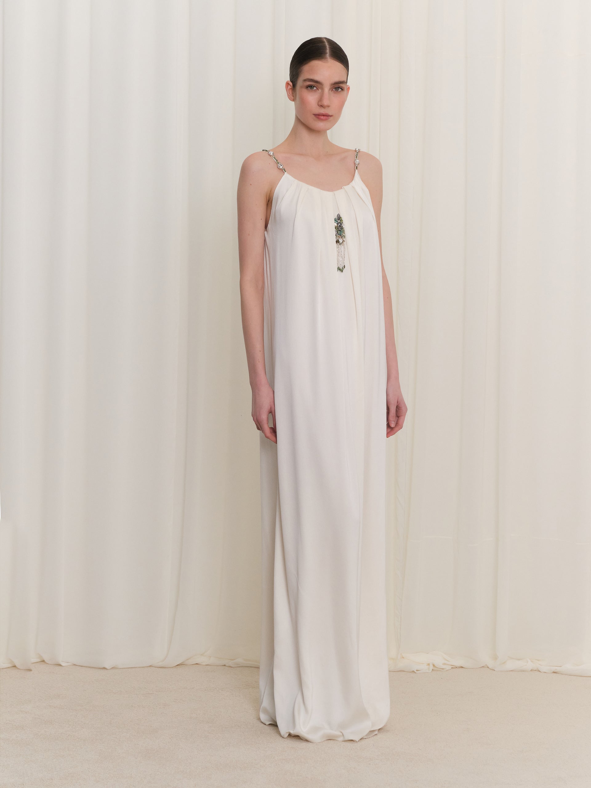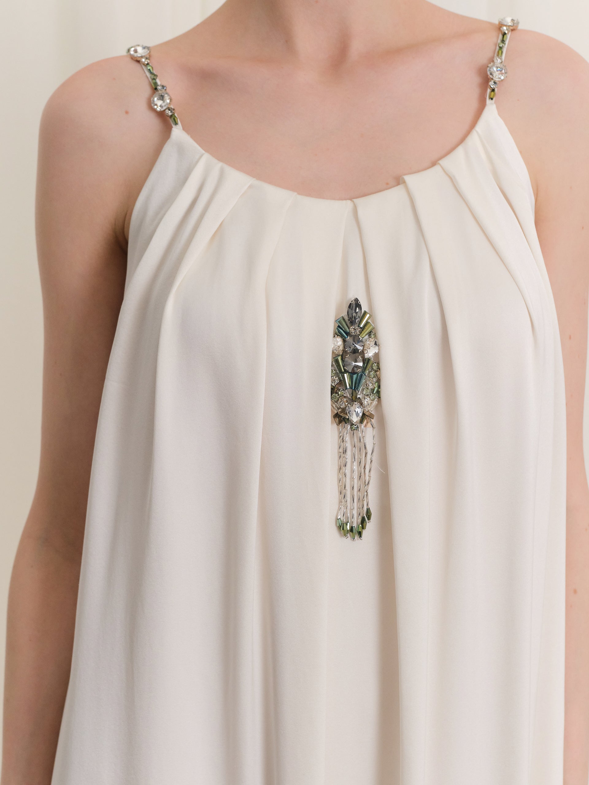Detailed Strappy Ecru Dress