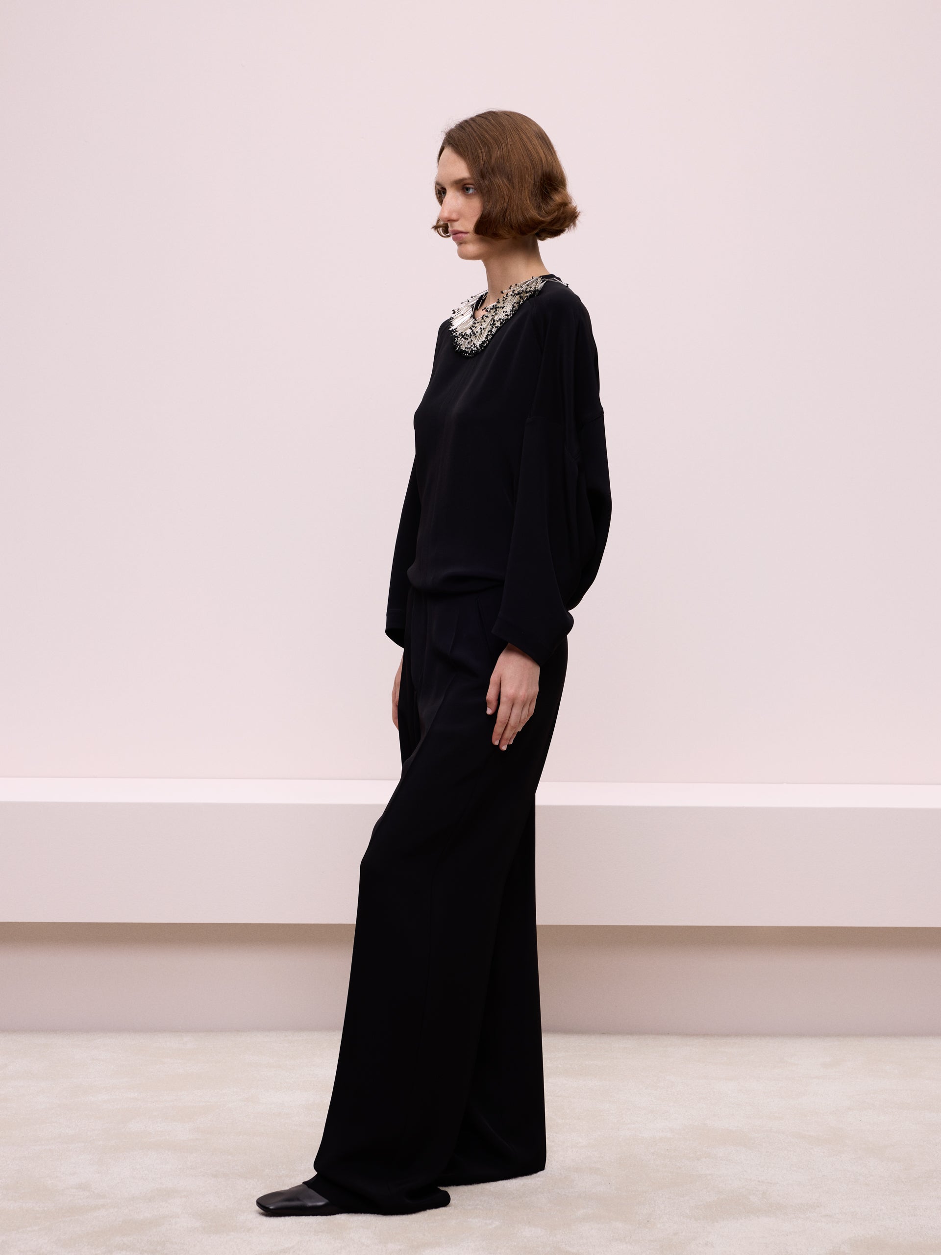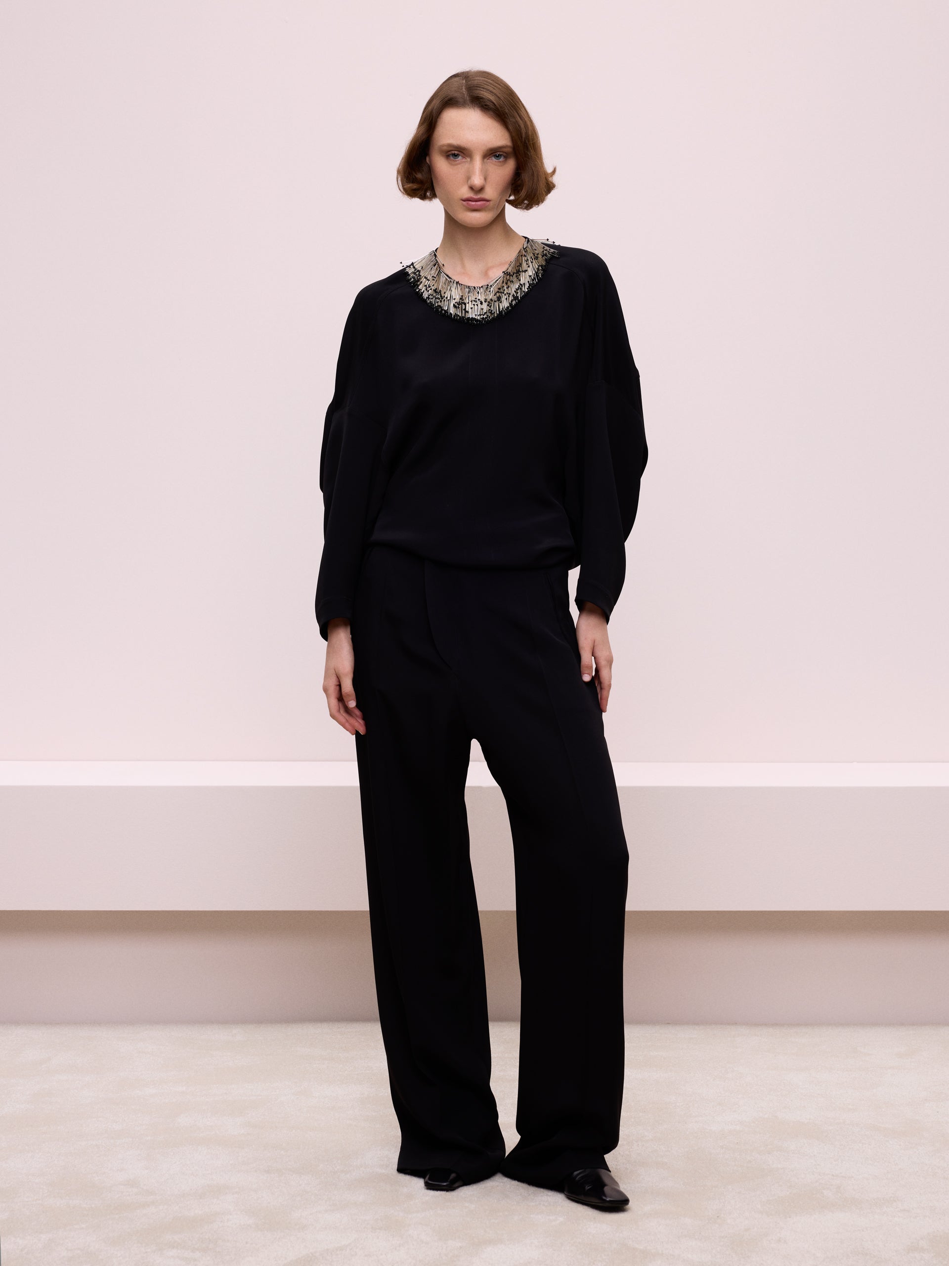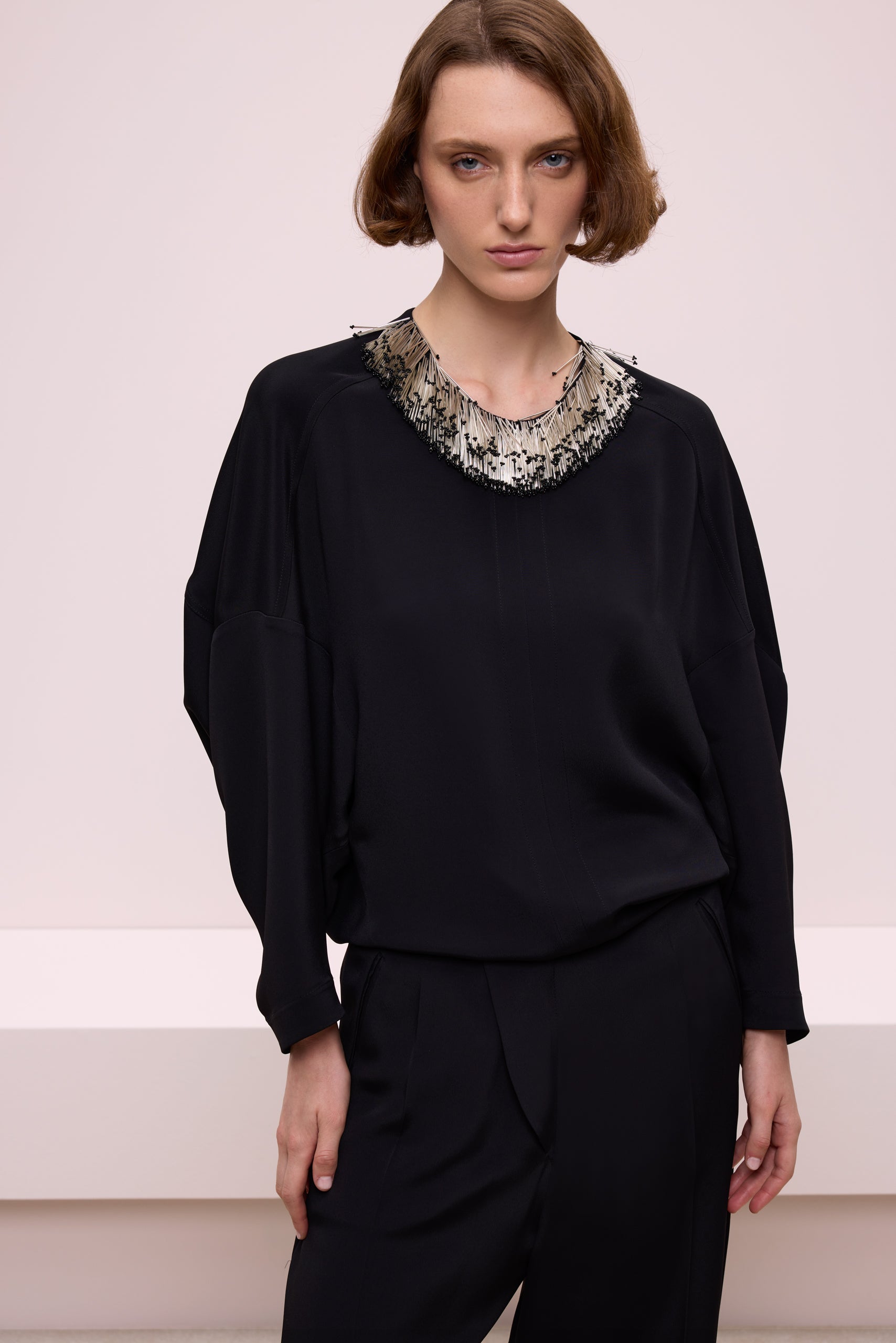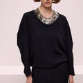 Boncuk Yaka Aksesuarlı Bluz
