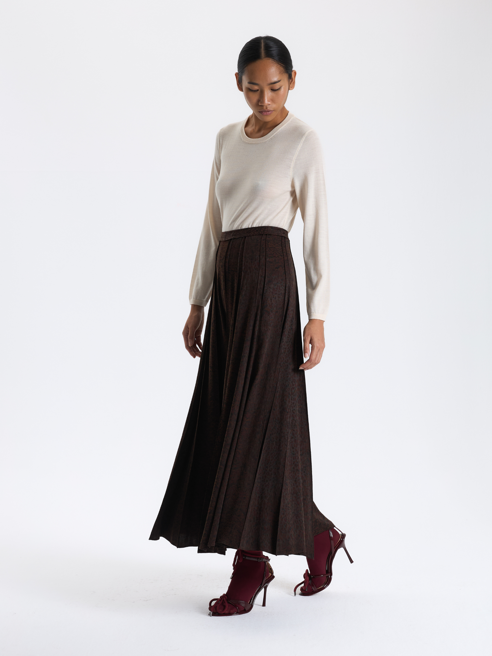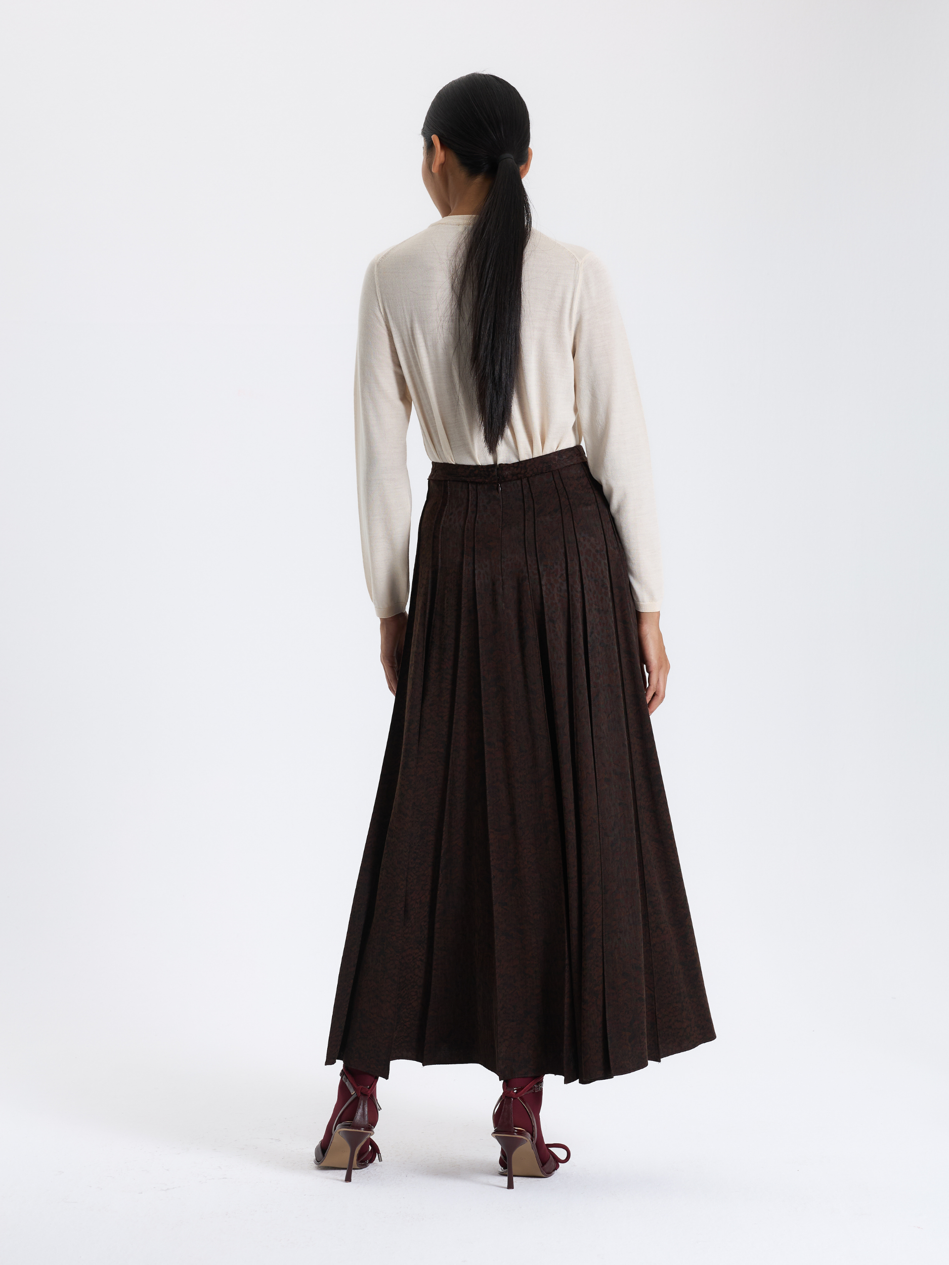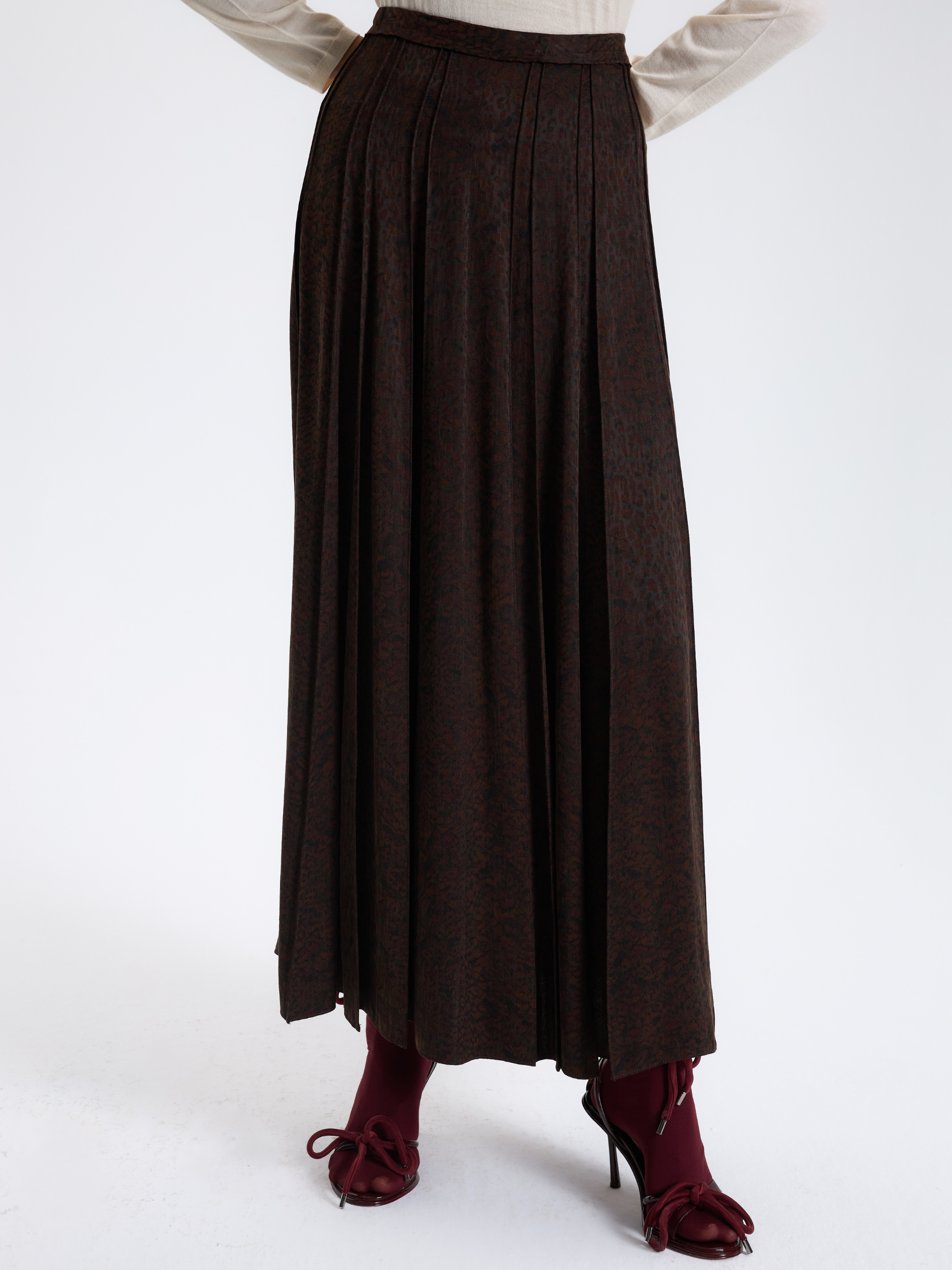Bordo Desenli Maxi Etek