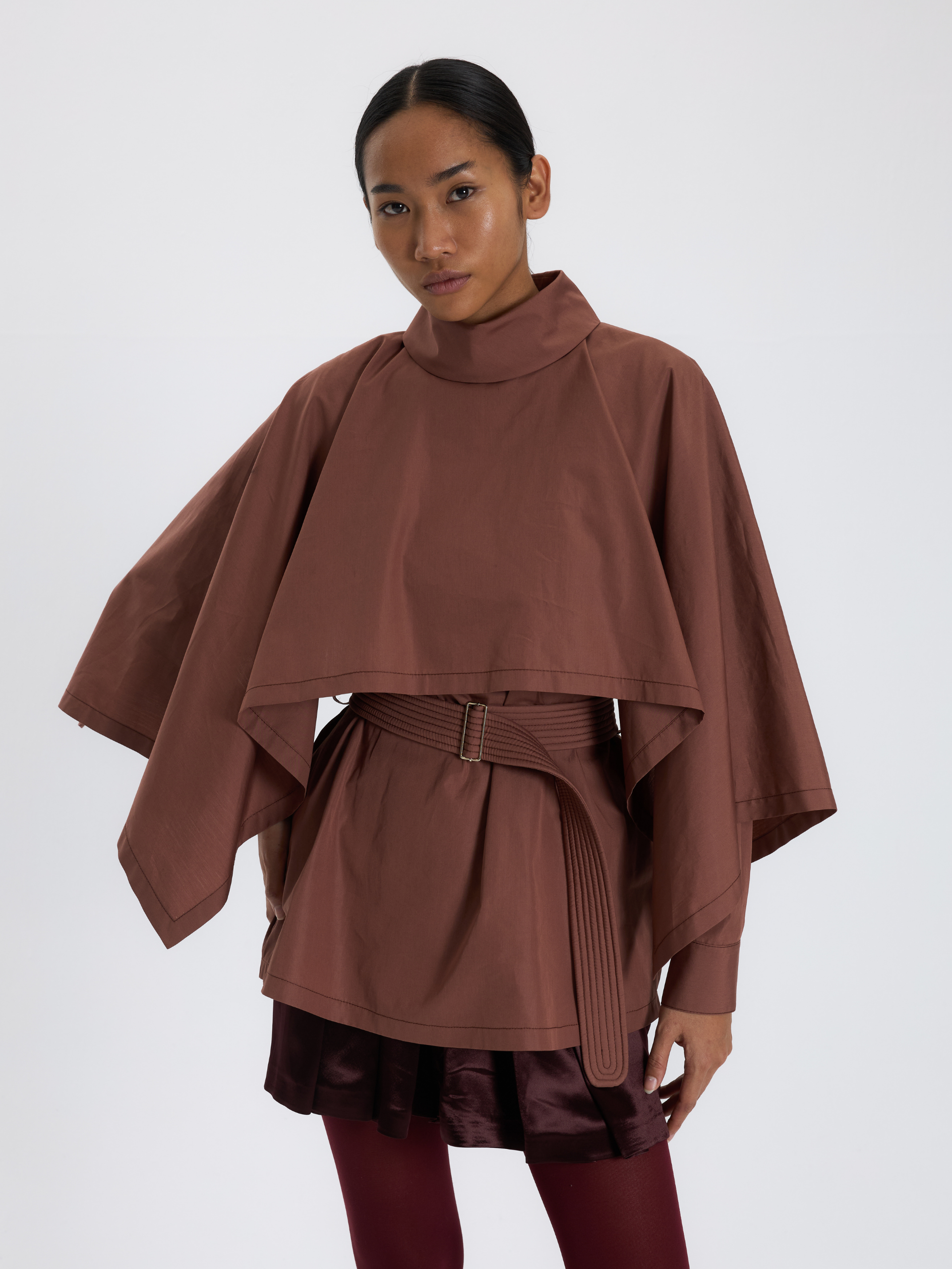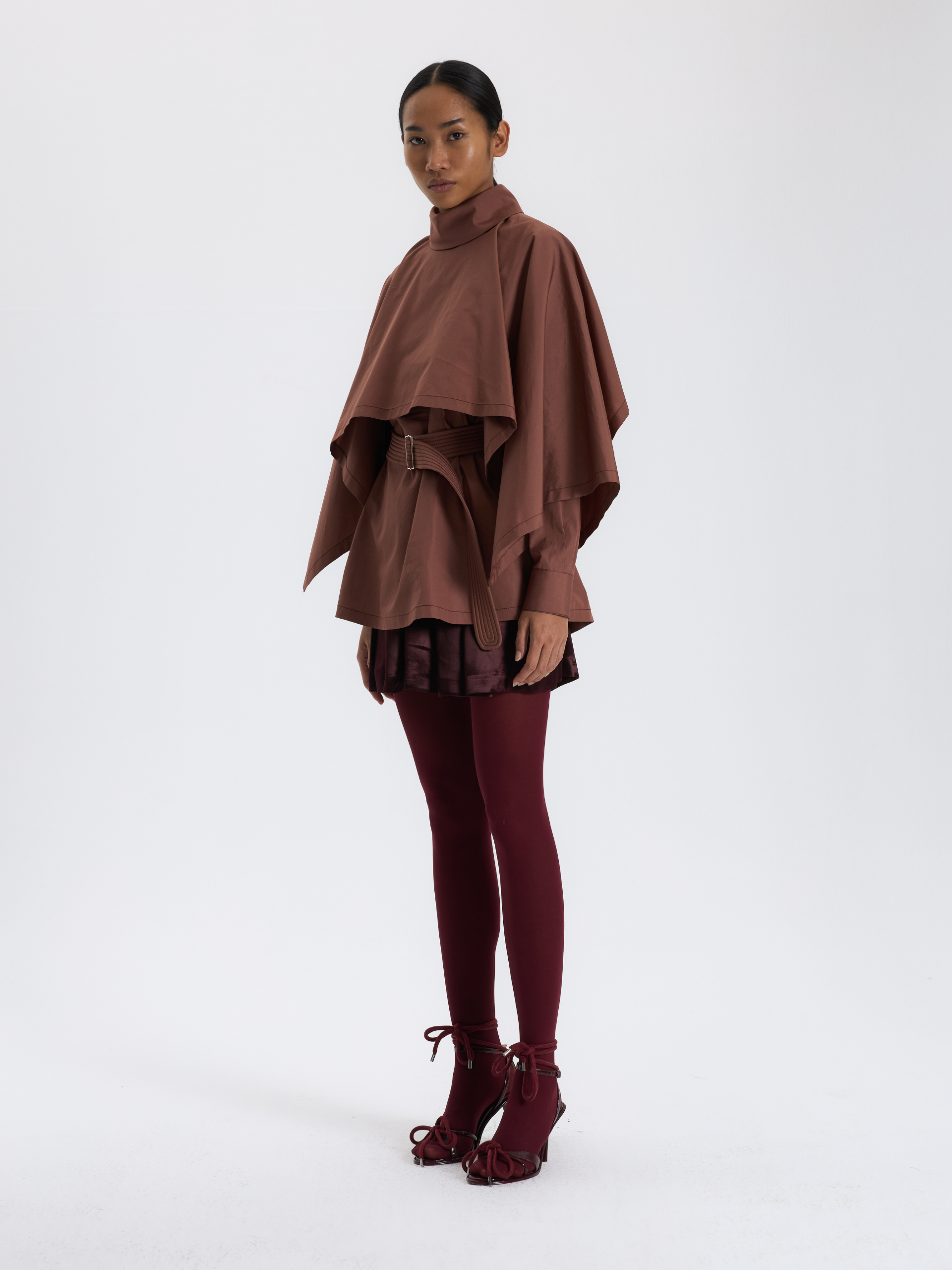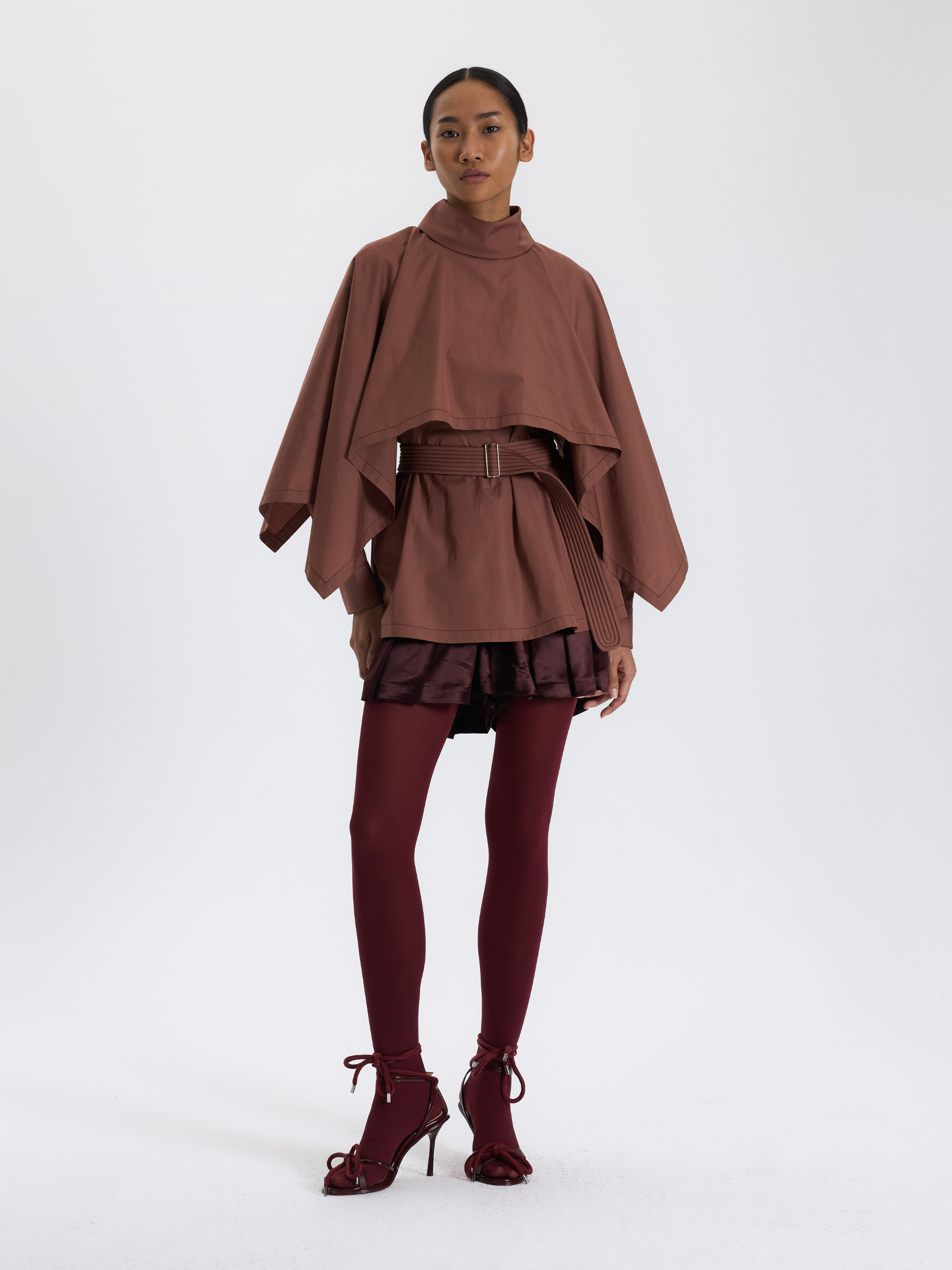 Kahverengi Kuşaklı Kısa Bluz