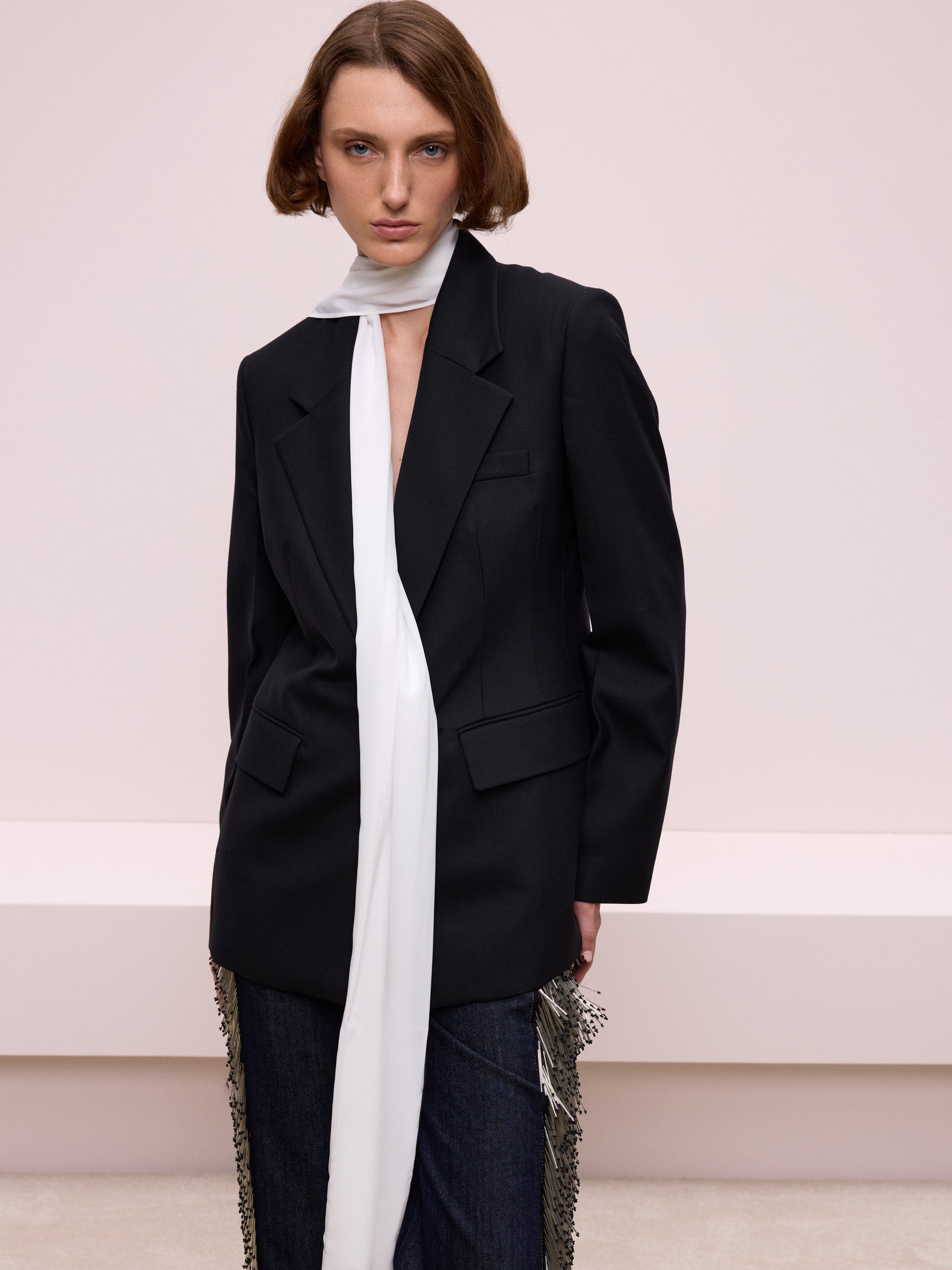 Siyah oversize ceket, rahatlık ve şıklığı bir araya getirir, her ortamda şık bir görünüm sunar. Kat kat giyinmek ve tarzınızı vurgulamak için mükemmel bir seçim.