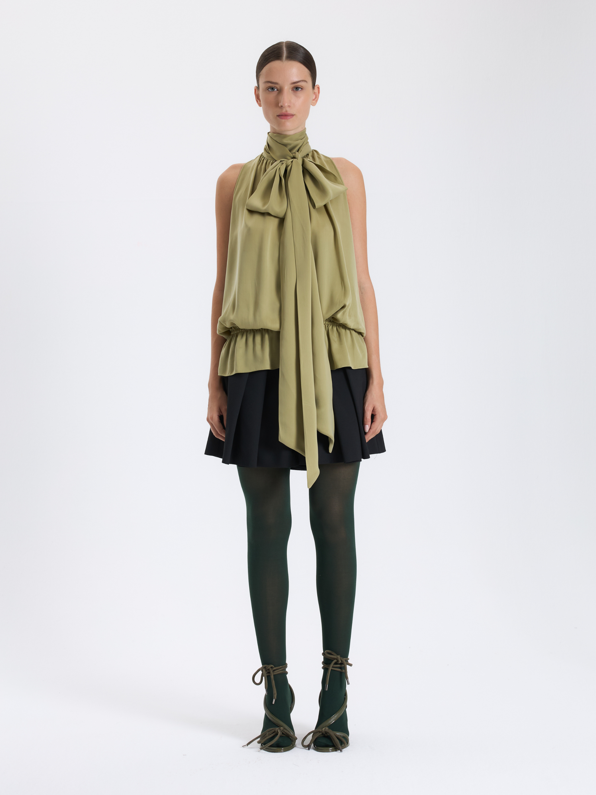 Sleeveless Blouse with Scarf Tie